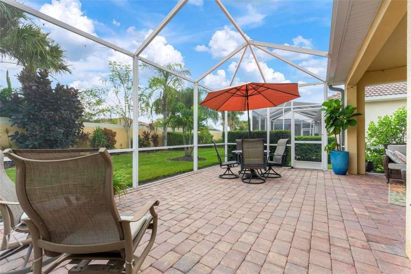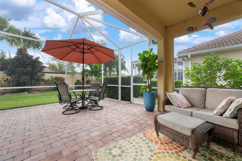 Welcome to IslandWalk at Wellen Park, one of the area’s most sought-after resort-style communities. This move-in ready Gray Mist Garden Series home offers an inviting open layout, with the great room flowing seamlessly to the lanai and an extended, caged paver patio that spans the back of the home—perfect for outdoor living. With eastern exposure, natural sunlight fills the home each morning, highlighting the tasteful finishes, including wood cabinetry, granite countertops, and tile flooring throughout with no carpeting. Featuring two bedrooms plus a den, a leaded glass entry door, a full set of storm shutters for protection and peace of mind, and meticulous care from the current owners, this residence is priced to sell and ready for its next chapter. IslandWalk is known for its unmatched amenities, from three heated pools, 12 pickleball courts, two fitness centers, bocce ball courts, a dog park, and community garden to its miles of walking, biking, and golf cart paths that connect through charming Venetian-style bridges. Leave the car behind and ride your golf cart to Downtown Wellen Park, the Braves Spring Training Stadium, or the Shopping Village. In just a short 15-20 minute drive, you’ll reach the area’s beautiful Gulf beaches and Historic Downtown Venice, with easy access to I-75 and countless dining and shopping options nearby. This is the perfect blend of comfort, convenience, and lifestyle living.