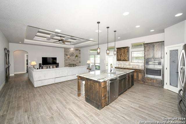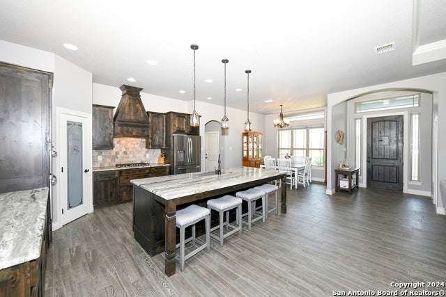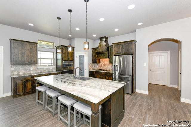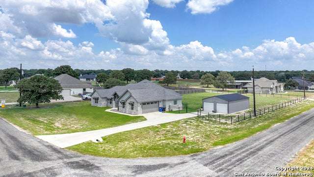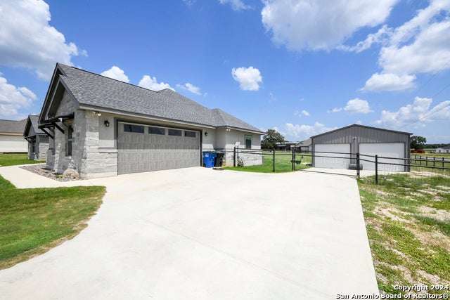 Step into this stunning, nearly new custom home, perfectly designed for modern living and offering an array of premium features. Built just three years ago, this 4 BR, 2.5 bath gem is nestled in the highly sought after LVISD. As you enter, you'll immediately notice the heart of the home - a gorgeous chef's kitchen that is sure to impress. Boasting a large granite island, custom cabinetry, and a gas cooktop. This kitchen is perfect for entertaining and preparing gourmet meals with ease. The open concept design flows effortlessly into the living area, where the rock fireplace creates a cozy and inviting atmosphere, perfect for family gathering or relaxing evenings. This property includes an approx. 1000 sf metal shop/detached two-vehicle garage ideal for hobbyists, additional storage or protecting your vehicles and is surrounded by a sturdy metal pipe fence. Additional highlights include high-end stainless steel appliances, a reliable propane tank and a "whole house" filtration system/water softener. Schedule a showing today!