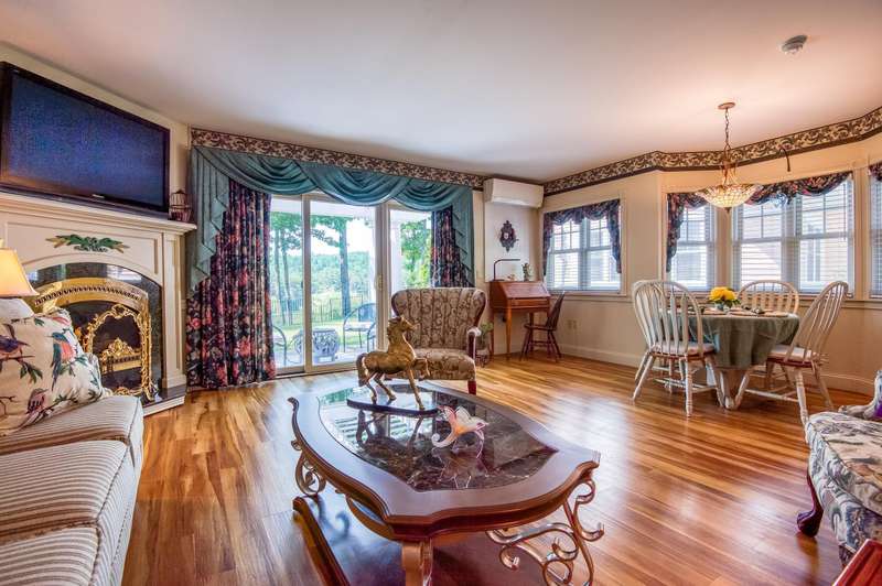 Experience refined mountain living in the desirable Victorian Village Condominiums, a quiet and serene seven-unit community within the scenic Nestlenook Resort of Jackson, NH. Just moments from the iconic Jackson Covered Bridge, this thoughtfully updated three-bedroom home offers a blend of comfort, convenience, and timeless charm. The main level provides effortless first-floor living, featuring two bedrooms, a full bath, laundry, a well-appointed kitchen, and an open-concept living and dining area that opens to a private back patio. Upstairs, the primary suite serves as a true retreat, complete with a beautifully renovated en-suite bathroom and a private balcony overlooking the peaceful grounds. With the flexibility to utilize the upper level as a lockout space, this property suits a variety of living arrangements. During the summer, unwind by the private association pool or stroll the peaceful, manicured grounds. In the winter, take advantage of sleigh rides and ice skating offered just steps from home. With numerous recent improvements and minimal maintenance required, this move-in-ready residence offers an exceptional opportunity to enjoy life in one of Jackson’s most charming and quiet communities. Schedule your private showing and experience it for yourself.