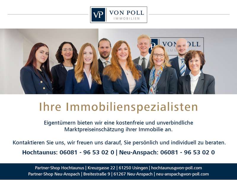 This well-kept residential and commercial building with three units combines living and working under one roof and impresses with its central location in Neu-Anspach. Whether for investors, tradespeople or owner-occupiers with the option of additional rental income - this property offers a wide range of possibilities on a total of approx. 224 m² of residential and commercial space, supplemented by practical ancillary areas and spacious outdoor areas. All three units, including one commercial unit and two residential units, are currently let. On the mezzanine floor of the building is a commercial unit measuring approx. 60 m², which has been run as a hairdressing salon for many years and is very well established. The stylishly designed salon welcomes its customers with an inviting entrance area and a spacious main room. A separate lounge with an integrated kitchenette provides a retreat for the staff. On the second floor there is a charming two-room apartment with approx. 50m² of living space and an open-plan living and dining area and kitchen. The living area and bedroom are fitted with light-colored laminate flooring including underfloor heating. A tiled daylight bathroom with bathtub also offers plenty of space. An external staircase leads from this apartment to a well-kept, ingrown and usable garden. The garden is currently for the sole use of the tenant of this residential unit and creates an idyllic retreat that invites you to relax. A spacious maisonette with a roof terrace of approx. 56 m² extends over the upper and top floors and offers a particularly comfortable living experience on approx. 110 m² of living space. The open-plan living and dining area boasts high-quality cherry wood parquet flooring, a cozy fireplace and three large windows that let in plenty of light. The bright fitted kitchen with practical storage cupboard is well and functionally equipped, has plenty of storage space and also offers space for a small dining area. A spacious daylight bathroom completes this level. On the top floor, there is a cozy bedroom with an adjoining dressing area, a further daylight shower room and another room that can be used flexibly. Thanks to the high kneeling floor in the attic and practical built-in wardrobes, there is plenty of storage space and floor space. The windows on the upper floor were also replaced two years ago. The highlight of this unit is the large roof terrace with panoramic views. The offer is complemented by a communal laundry room in the basement, a boiler room with a new Viessmann heating system and a cellar room for each residential unit. The necessary parking space is provided by a large garage with an electric roller shutter door and two outdoor parking spaces in front of it. All in all, this residential and commercial building presents itself as an attractive overall package, especially as a solid capital investment with plenty of potential.