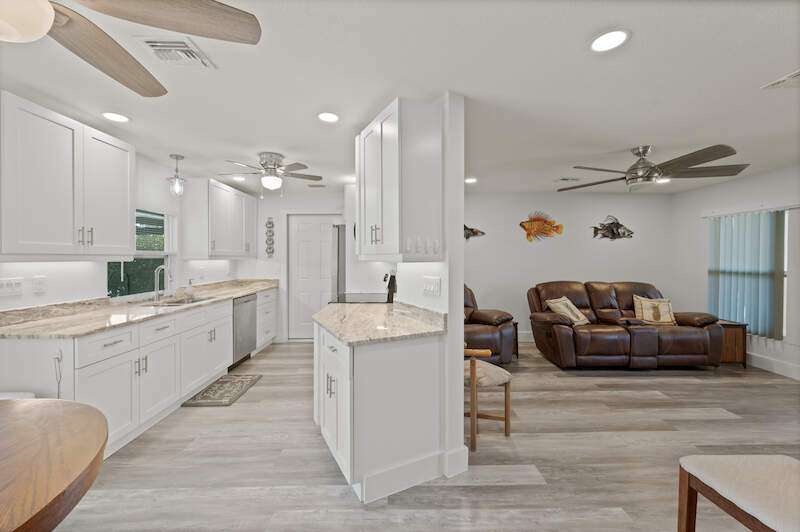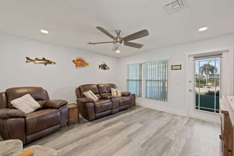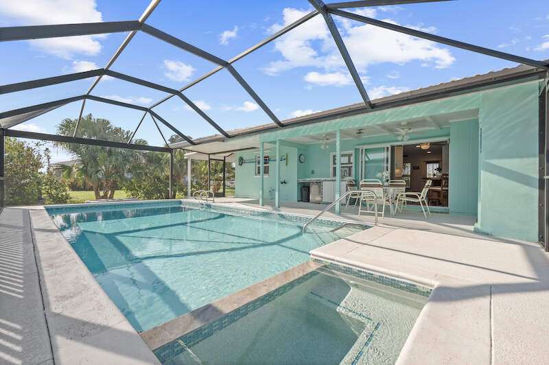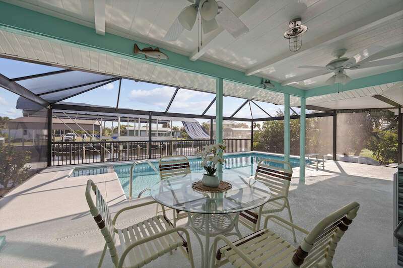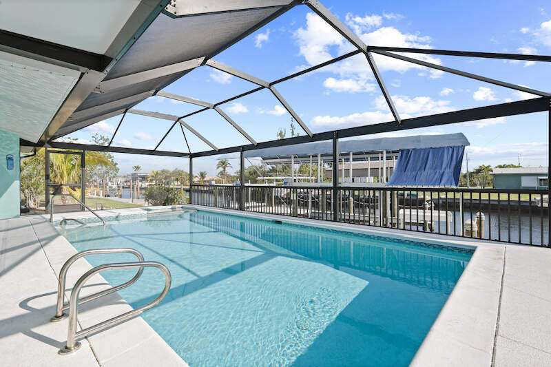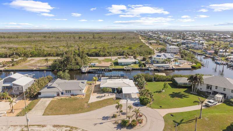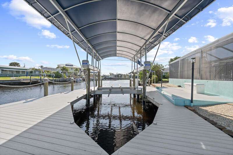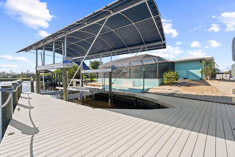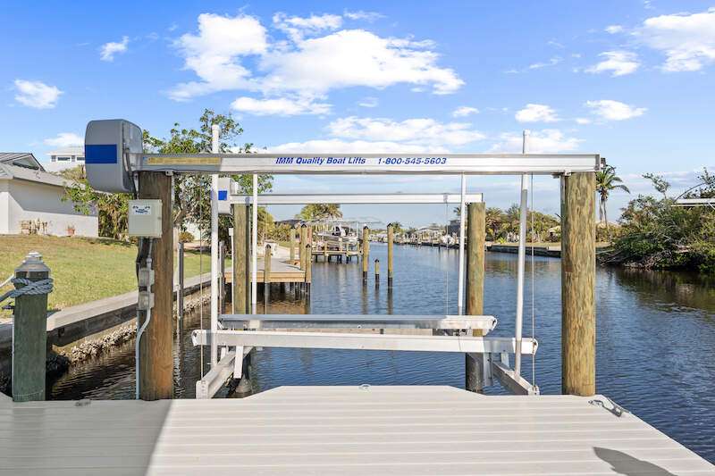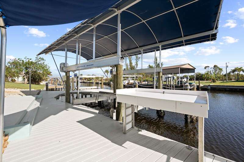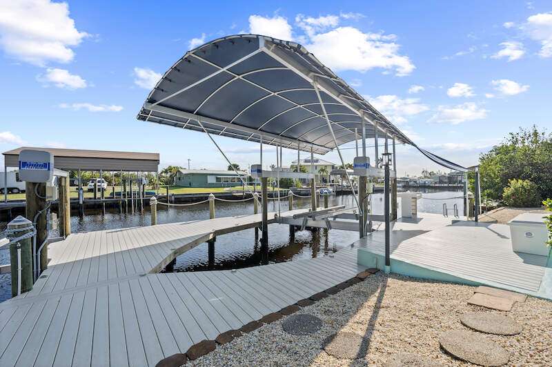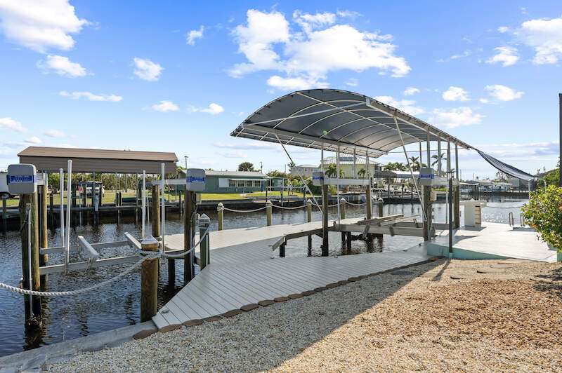 WHOA!!! Have I got the Charter Captains, Fishermen or Women's DREAM PROPERTY IN PARADISE!! This home is like having your own MINI MARINA right here! With two boat lifts(yes I said 2) one 20,000 lb. and the other is 7000 lb. gives you a choice between Deep Sea fishing and Shallow water fishing. The Captains wraparound composite wood dock will last a lifetime and has plenty of room for maneuvering with a large cleaning station and Dock Box. Situated on the Dawson Canal with Direct 5 minute access to Matlacha Pass which gives you many directional options from Pine Island Sound to the North towards Cabbage Key or South to the Sanibel Bridges and Fort Myers Beach to exploring the Caloosahatchee River, your choice! In any direction you decide, the fishing and boating options are endless from catching a World Famous Tarpon in Boca Grande Pass to hunting the elusive snook, redfish and snapper in the back waters. You are right in the middle of Some of the Best fishing Florida has to offer! The home itself...being completely re-constructed down to the stringers the upgrades are endless throughout the home including NEW ELECTRICAL WITH TOUCH LIGHTING, NEW PLUMBING, LUXURY VINYL FLOORING, HURRICANE RATED WINDOWS AND DOORS, GRANITE COUNTER TOPS, SHAKER CABINETRY, and BRAND NEW A/C AND DUCTWORK, just to name a few. Being SOLD TURN-KEY FURNISHED makes moving in a breeze and the RELAXED COASTAL DECOR will Welcome you as you walk through the door. The master suite has sliding door access to the covered lanai area with paver pool deck so you can slip into the HOT TUB after a great day of fishing or COOL OFF IN YOUR OVERSIZED POOL with a well-deserved beverage. There are 50 rod holders in the ONE CAR GARAGE along with the LAUNDRY AREA/UTILITY SINK, and the owner expanded the driveway and put in a tall reinforced Carport to house more and bigger vehicles along with cover for the pool equipment, 50lb ice machine, and extra freezer to store all those fish! Located on a cul-de-sac also makes for less traffic and more privacy with a very low maintence yard and nice screened front porch to relax on. I GUESS WHAT I AM TRYING TO SAY HERE IS... BETTER MAKE YOUR APPT. TODAY BECAUSE THIS IS TRUELY WHAT FLORIDA LIVING IS ALL ABOUT!!