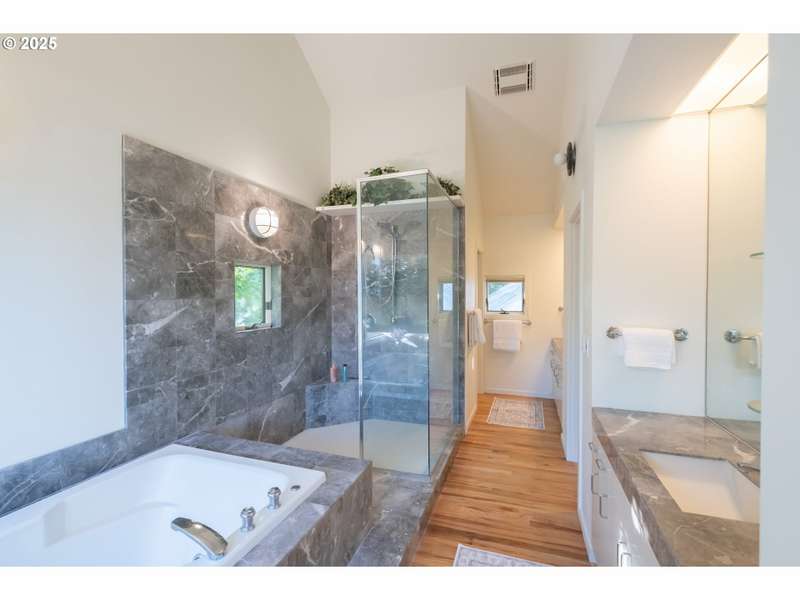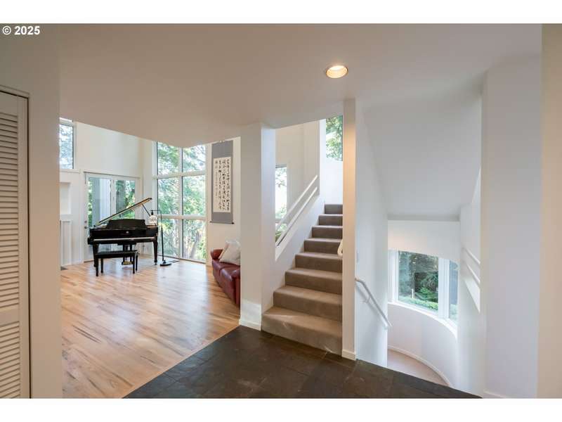 Contemporary home with great valley views near McDonald Forest offers space for all! 2-story-high living room with fireplace open to large covered deck. Gourmet kitchen with modern appliances, huge center island & tons of cabinets, breakfast nook open to a large view deck. Primary ste & loft with jetted tub, granite shower, his/her marble vanities, large walk-in closet, private view balcony. 2nd ensuite, half BA & laundry on main level, 3 more BRs & BA with family room & fireplace on lower level, open to expansive back patios & manicured lawn. Beautifully landscaped with 11-zone irrigation system, mature oak grove perfect for outdoor picnic. Circular driveway, updated GFA heating with AC, 3-car garage with cabinet/attic storage & epoxy floor, wired for elevator. Fresh exterior paint, life-time metal roof, & much more!