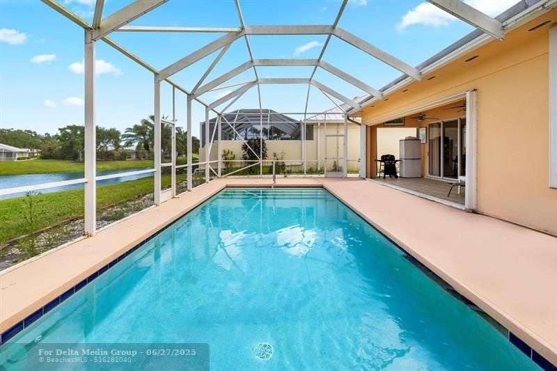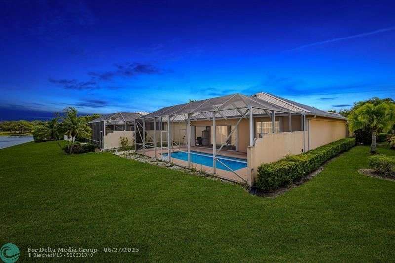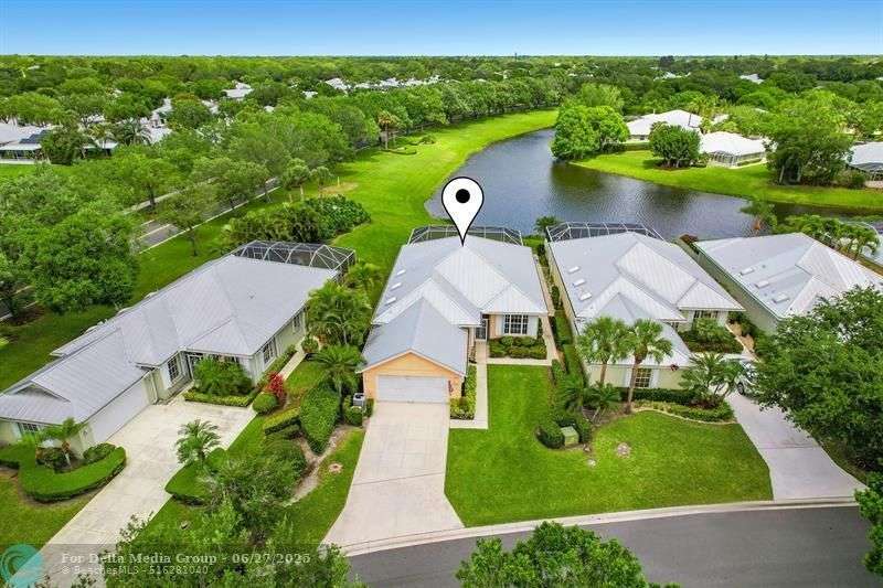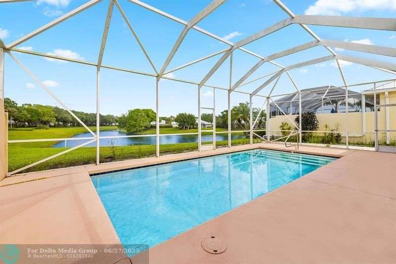 Stunning 3BR/2BA Bedford model pool home in The Meadows at Martin Downs with sweeping lakefront views. Situated on a premium waterfront lot beneath mature trees, this light-filled home offers peaceful Florida living. Features include a well-appointed kitchen, tile flooring, plantation shutters, a spacious primary suite with serene lake views, a walk-in closet, a soaking tub, and a frameless glass shower. Enjoy your private screened pool and patio, perfect for relaxing or entertaining. This home also offers a 2-car garage. Built with quality and full hurricane protection, including accordion shutters & a metal roof (2018). The Meadows offers a heated pool, tennis, pickleball, bocce, playground, & 24-hour security. A-rated schools and easy access to I-95, Turnpike, dining & beaches.