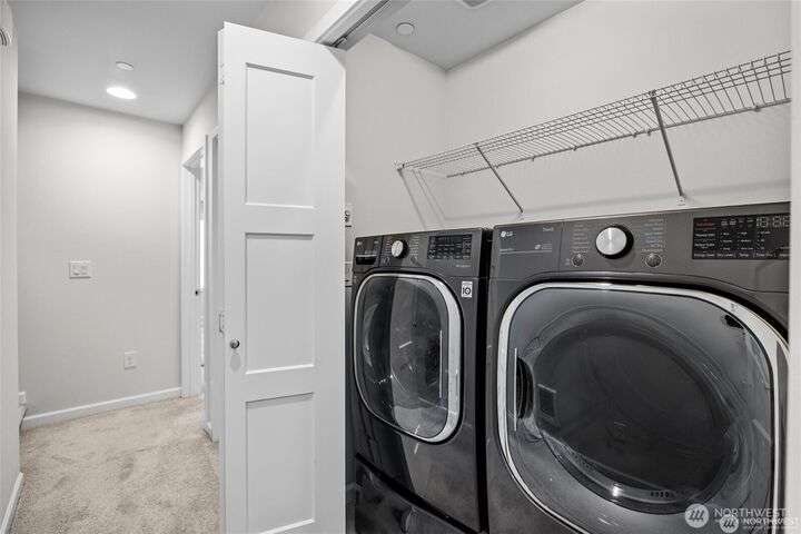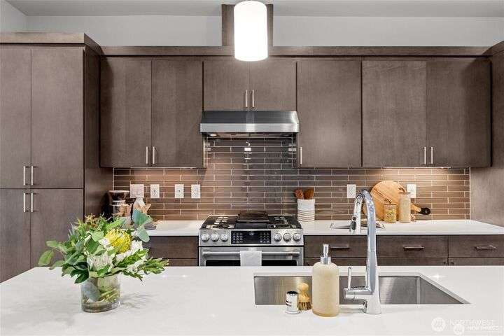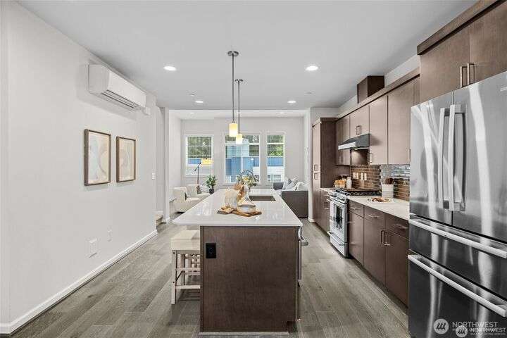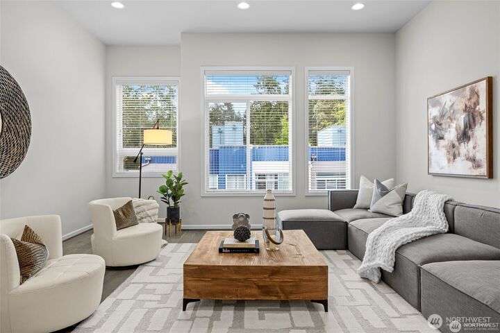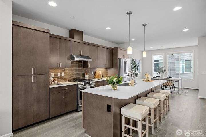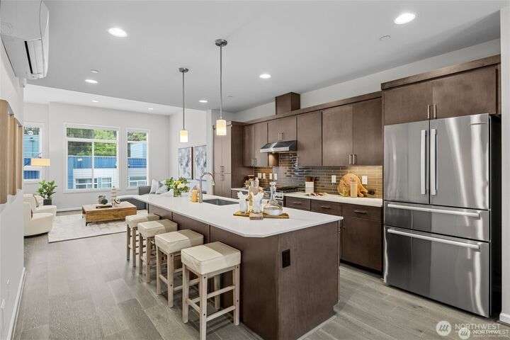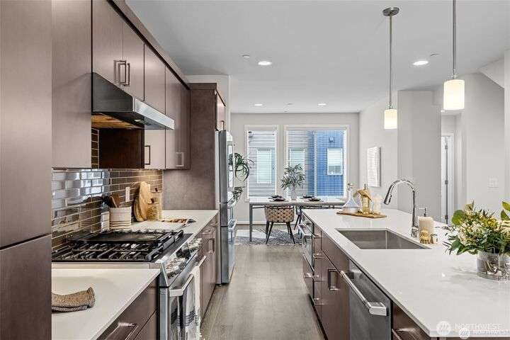 Stunning 2-bedroom townhouse by Taylor Morrison, ideally situated in the highly sought-after Kirkland/Juanita community. Thoughtfully designed w/ modern finishes and an open-concept layout, this home is perfect for both entertaining & everyday living. The expansive chef’s kitchen features stainless steel appliances, a gas range, pull-out shelving, abundant soft-close cabinetry, and generous quartz counter space. Enjoy seamless indoor-outdoor living on the rooftop deck—ideal for relaxing or dining al fresco. A spacious 2-car garage with EV Charger, extra storage & convenience. Located near Lake Washington, local parks, dining, and within the top-rated Northshore Schools, this home offers the perfect blend of comfort & style. No Rental Cap.