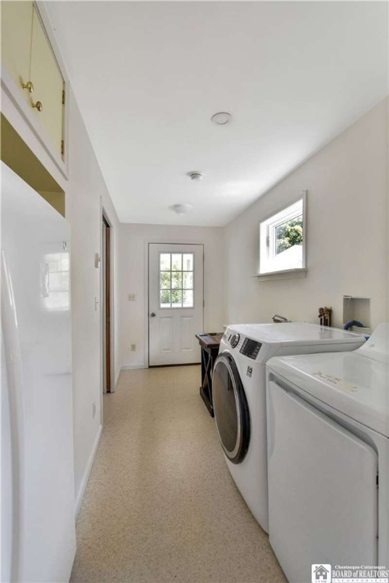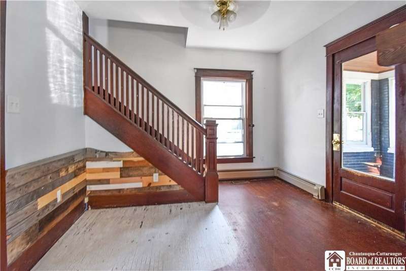 You'll be welcomed by an enclosed front porch that leads into the foyer. From there, the first floor offers a large living room and formal dining area, followed by an eat-in kitchen. Also on this level is a first-floor bedroom with access to a full bathroom. Just off the kitchen, you'll find the laundry room, which has a door leading to the backyard. The home showcases original woodwork throughout, and upstairs, you'll find three additional bedrooms, two of which have double closets, along with another full bathroom. A full basement adds plenty of storage space. All appliances are included, and the home is equipped with central air for added comfort.Outside, there's a one-car detached garage, a partially double-wide concrete driveway, and a fenced backyard. Conveniently located in the heart of the Village of Westfield, with easy access to Welch Field, schools, shops, restaurants, and more.