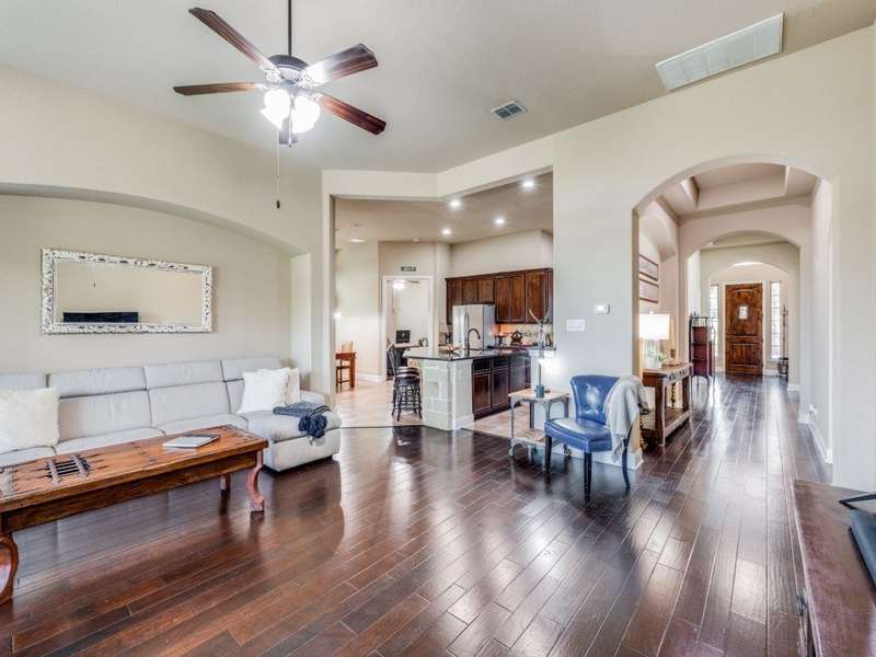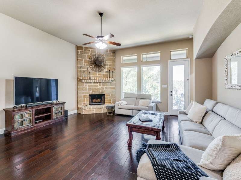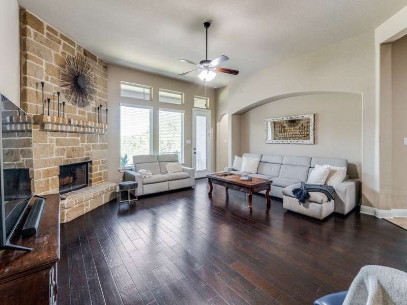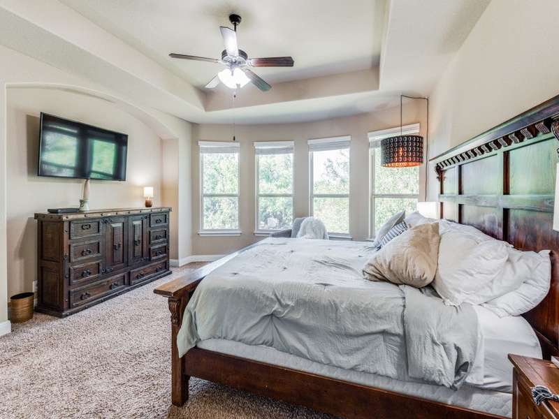 5604 Copper Creek boasts a well thought-out floorplan that maximizes space and functionality. The interior features high ceilings, elegant finishes, and stylish fixtures complimented by architectural niches throughout, creating an inviting atmosphere. The kitchen is often a highlight equipped with modern appliances, ample counter space, and a huge island/breakfast bar making it a focal point for culinary creativity and gatherings. The secondary bedrooms are generously sized, providing peaceful retreats with their own baths and private lounging area. The Primary Suite feels like you are nestled in the trees with the large windows facing the private backyard. This ample room host a luxurious en-suite bath with soaking tub and walk in shower. Additional features include a private office/craft area perfect for remote work or hobbies. Both the formal dining and in kitchen dining ensures ample space to host holiday gatherings. The outdoors is equally impressive with cover raised porch providing the perfect spot for morning coffees and enjoying natures wildlife, accented by gardens and enticing trails that lead you to a number of private nooks and spaces to lounge or entertain guests. You will feel like you are in an enchanted garden! Located in New Braunfels, residents of Copper Ridge enjoy a manned gated community. Rich with attractions, enjoy the scenic Comal & Guadalupe rivers and the vibrant downtown shops, restaurants as well as live music venues. The community is known for its friendly atmosphere, making it a wonderful place to call home. 5604 Copper Creek represents a wonderful opportunity for anyone seeking a quality lifestyle in the Texas Hill Country!