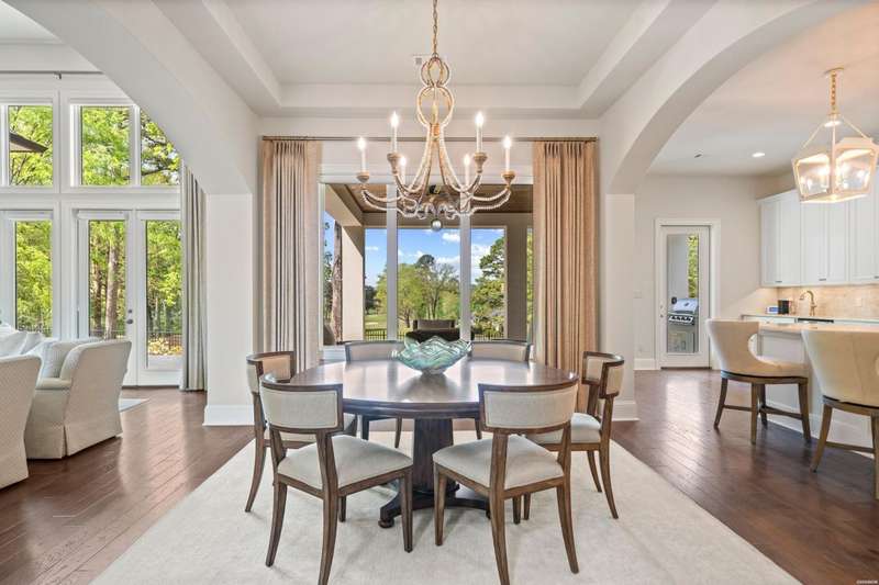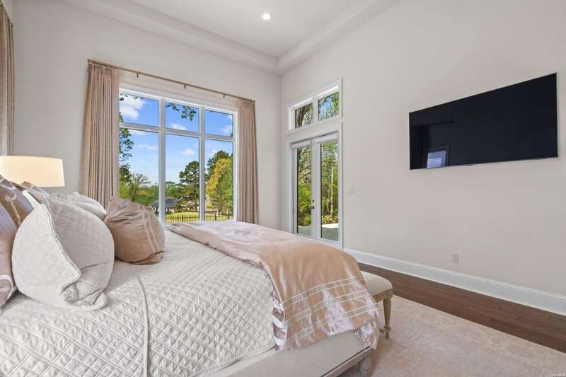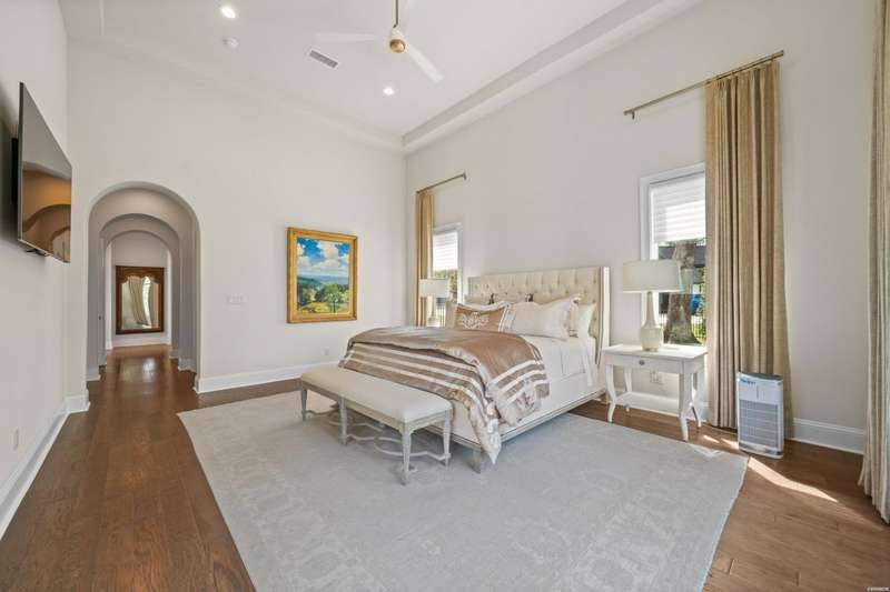 This luxurious retreat is nestled on the serene greens of the Hot Springs Country Club golf course. Offering 4 bedrooms, 4 1/2 bathrooms for comfort and convenience. As you enter, you are greeted by a spacious and inviting living area with vaulted ceilings perfect for entertaining or relaxing with family. The chef's gourmet kitchen will make meal preparation a delight. It boasts modern upscale appliances, beautiful countertops, gas stove, and ample cabinet space. Off the kitchen you will find a large laundry room and a pantry as well. The kitchen is open to the living and dining area so you can enjoy the guests while cooking and entertaining. The master suite is a sanctuary of relaxation, featuring a large WIC, and a luxurious en-suite bathroom with dual sinks, a soaking tub, and beautiful walk in shower. Three additional well-appointed bedrooms provide plenty of space for guests or a growing family. Step outside onto either of the expansive outdoor areas and enjoy breathtaking views of your private and landscaped backyard. Additional features include a two-car garage, and golf cart garage. This home offers ample storage throughout. Whether you enjoy golfing, tennis or simply appreciate the beauty of nature, this home offers the perfect blend of luxury and relaxation. Don't miss your chance to own this exceptional property in one of Hot Springs' most desirable neighborhoods. Schedule your private tour today and experience firsthand the beauty and comfort that Arlington Park gated community has to offer.