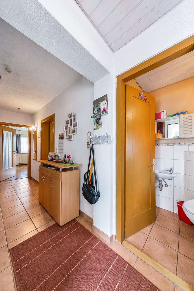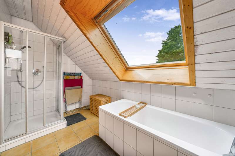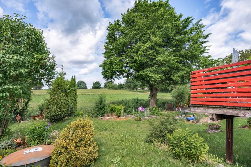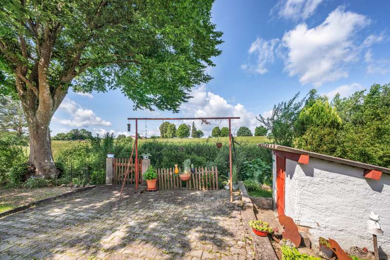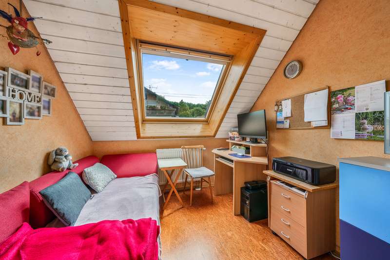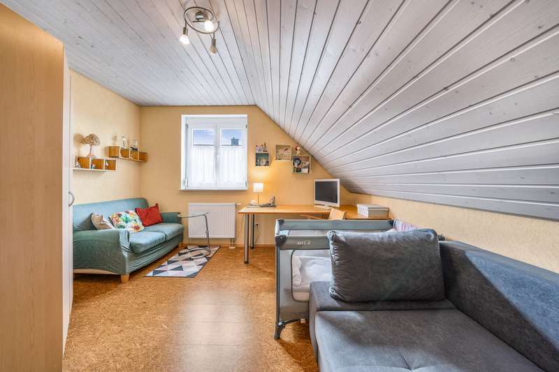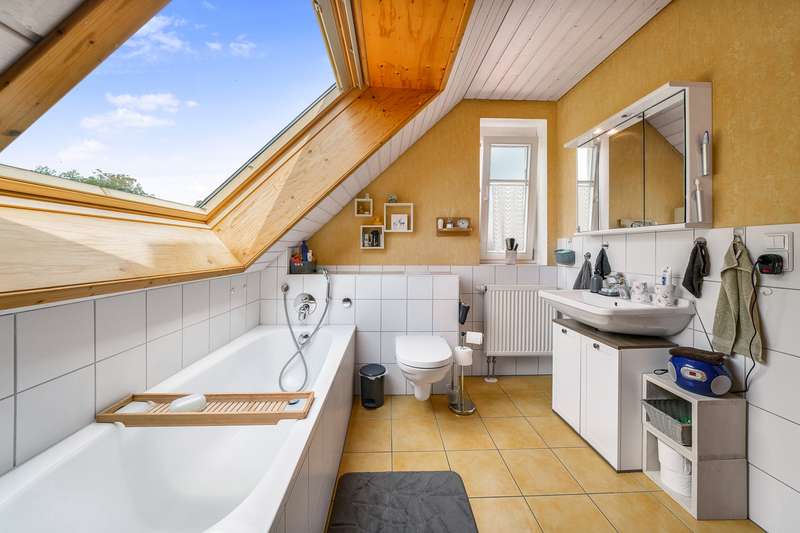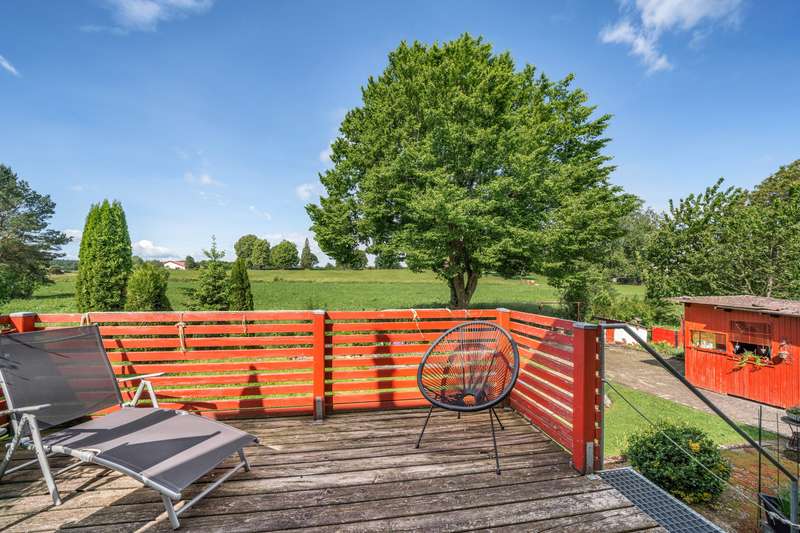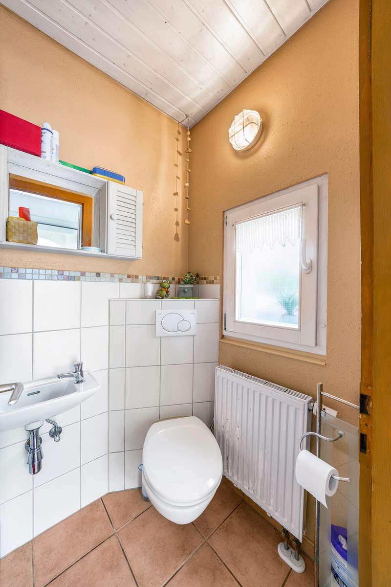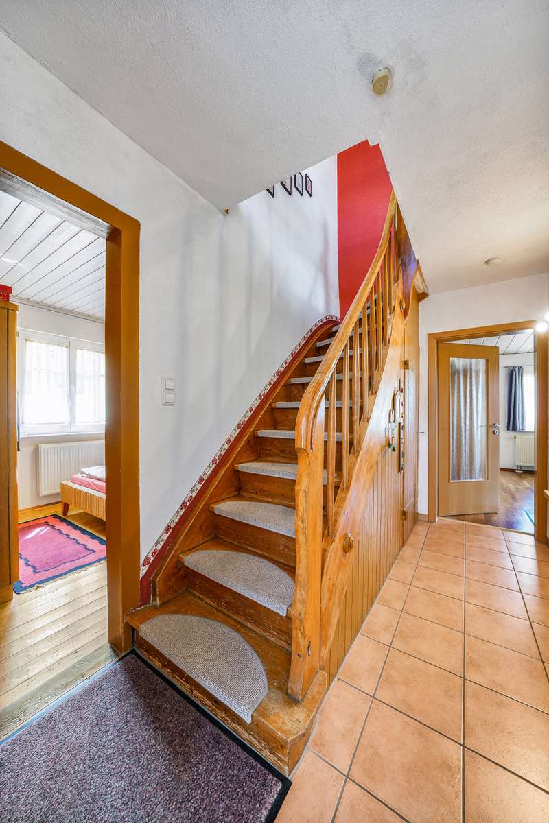 It is our pleasure to be able to offer you this well-kept, cozy, approximately 100 square meter detached house for sale, which was originally built in 1952 in solid construction on a spacious plot of approximately 755 square meters on the outskirts of the village. The top floor of the property was completely demolished in 2005, a new top floor in timber frame construction was added and the remaining substance was completely renovated. The property is now a mixed construction. Due to the key data of the property, it could be particularly suitable for young families, animal lovers and hobby gardeners. The property's living space of around 100 square meters is spread over six rooms on the first floor and the top floor. A dining room, a living room, three bedrooms and an office. These are complemented by a kitchen, a bathroom and a guest WC. Upon entering the house, a hallway, which also contains the staircase of the property, leads to the kitchen, the dining room, one of the bedrooms and the guest WC. From the dining room with its cozy fireplace, you can access both the kitchen and the living room as well as a terrace in the garden. The staircase in the hallway leads to the top floor, where another hallway connects all the rooms here. It provides access to two further bedrooms, an office and the house's bathroom, which features a shower, a bathtub, a washbasin, a WC and a large skylight for natural light. The hallway also provides access to a balcony and the attic via a hatch in the ceiling. The basement can also be accessed via the staircase. There are four rooms here, which give the house an additional 56 square meters of usable space. This includes an old bathroom equipped with a bathtub and washbasin, which is currently used as a laundry room. The garden can also be accessed via the basement. This offers plenty of space for a variety of activities with the family, pets or for relaxing gardening work and projects and even provides access to the adjacent small course of the Heudorf stream. There is also a double carport and a gazebo on the property, which offers the opportunity to sit under cover and enjoy the garden regardless of the weather. In 2005, all water and sewage pipes, the entire electrical system, all windows and the heating system were replaced and the building was completely insulated as part of the core renovation. A solar system was also installed on the new roof, which is used to heat water. The solid building fabric and the modernizations already carried out in 2005 lay the foundation for long-term use and offer interested parties the opportunity to customize the rooms to their own taste without having to invest time or money in energy-related or other renovations. Interested parties are invited to arrange a viewing appointment to gain a personal impression of this property and discover the possibilities and special features of the property at first hand. If you are interested, we will be happy to provide you with further information, arrange a viewing appointment and answer any questions you may have.