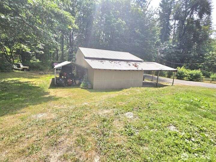 This property has a lot to offer! Rambler in good condition on a pretty, one acre lot. Living room with cozy wood stove and laminate hardwood throughout. Large metal shop with power and woodstove, separate utility storage area and covered carport. Large woodshed by the house plus a small outbuilding. Lovely patio and garden setting , a generous garden space and beautiful acreage bordered by tall firs. Excellent rural location, not far from all amenities.
