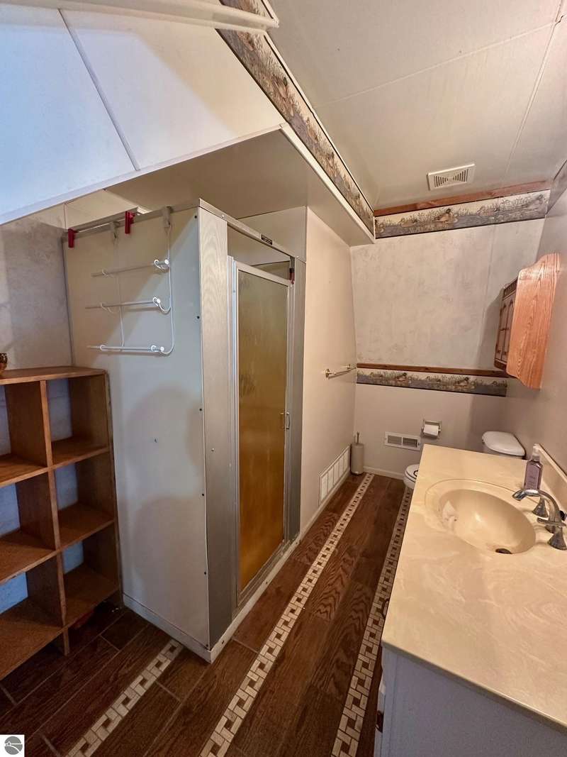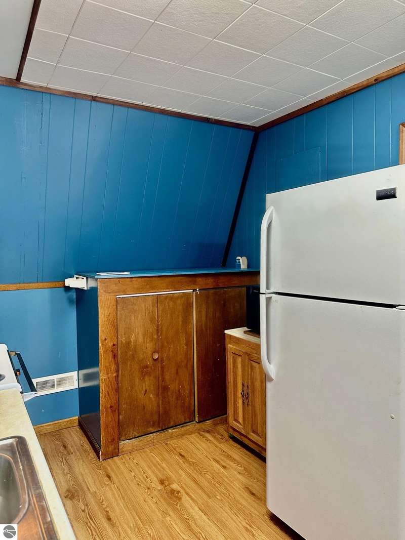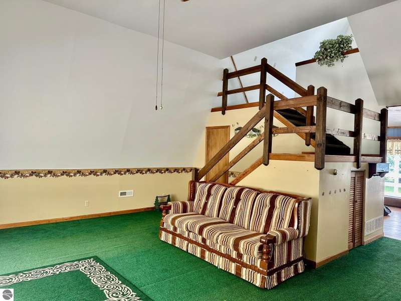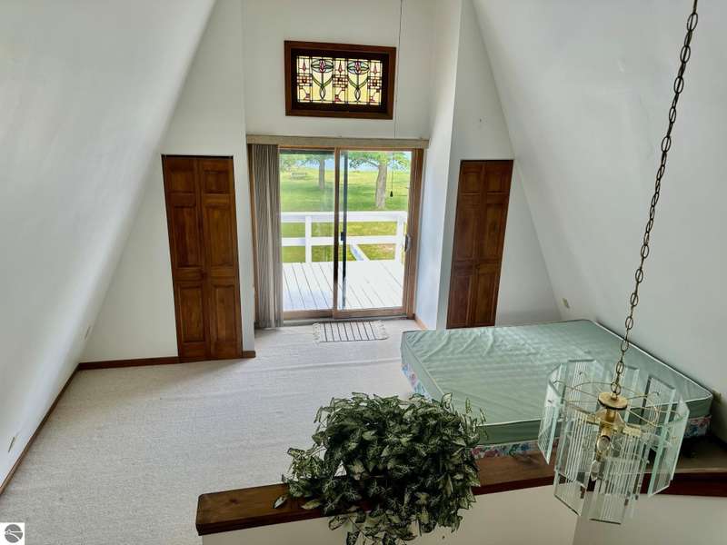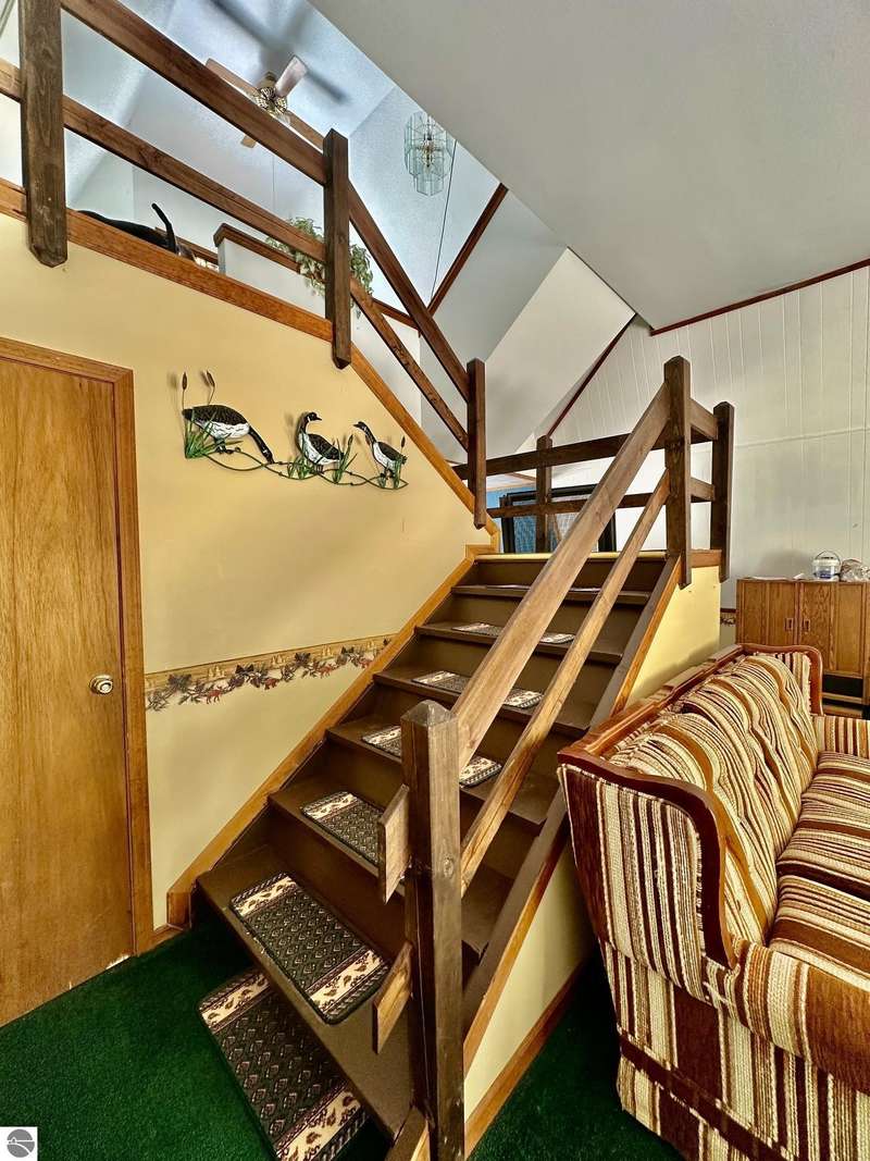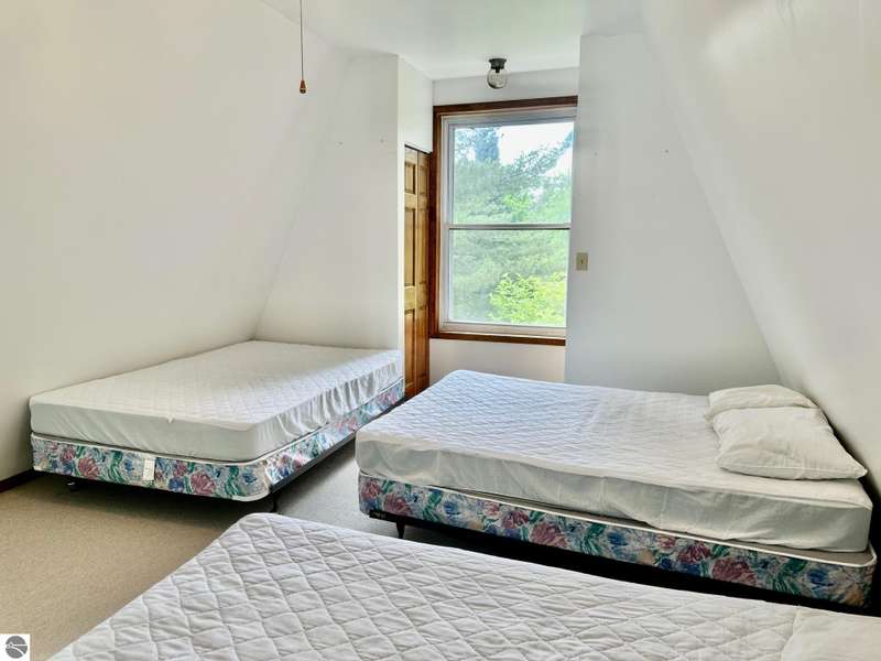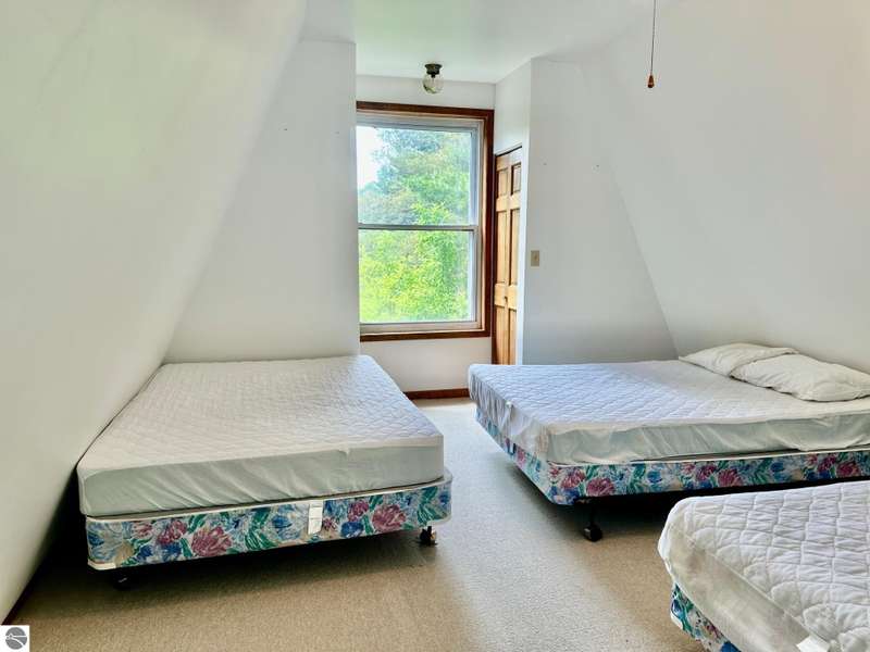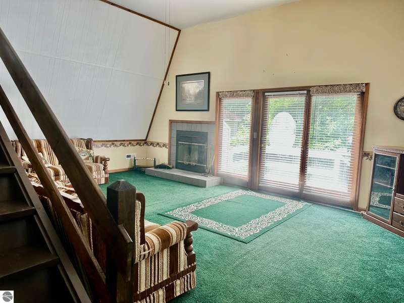 Are you looking for space? This lot has plenty! At roughly 56' x 505', and neighbors with equally deep lots, there is room to expand with a garage or pole barn, if desired. At over 1215 sq.ft., this cute A-frame has two large sleeping areas, one bathroom and a large 22'x15' living room with a tall open ceiling featuring a cozy wood burning fireplace. This large room is open to the dining area that looks out to the lake. Move out one of the two door walls onto the 12'x16' deck to enjoy the lake view and for grilling and picnicking. Moving upstairs, the lower of the two sleeping areas provides an ample 14'x10' space with another door wall opening onto a 10'x8' second level deck. Move up just 5 or 6 steps to another 16'x15' sleeping area with room for several beds. Lots of sleeping room for children and/or grandchildren!!! Memories!!!
