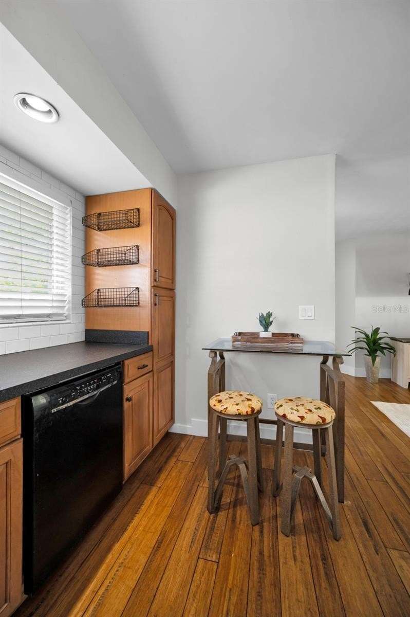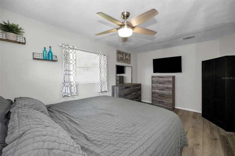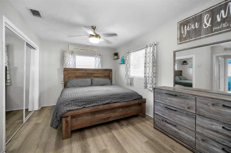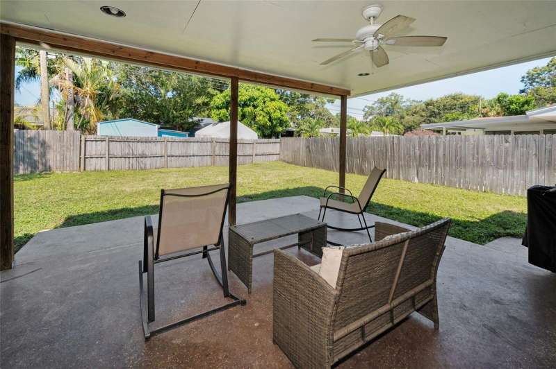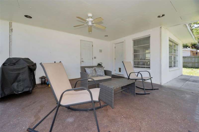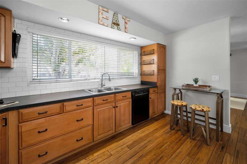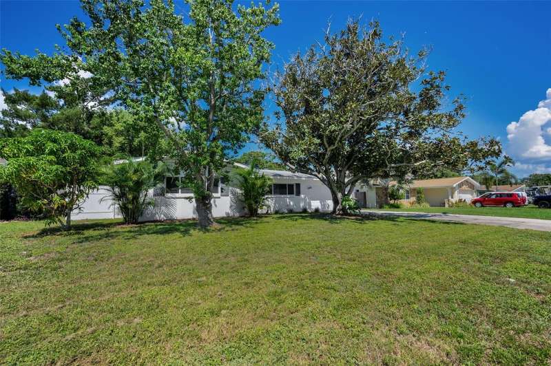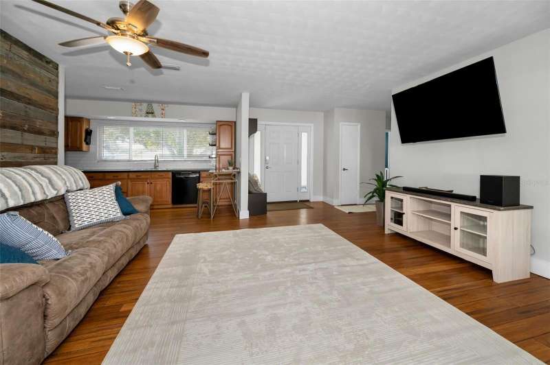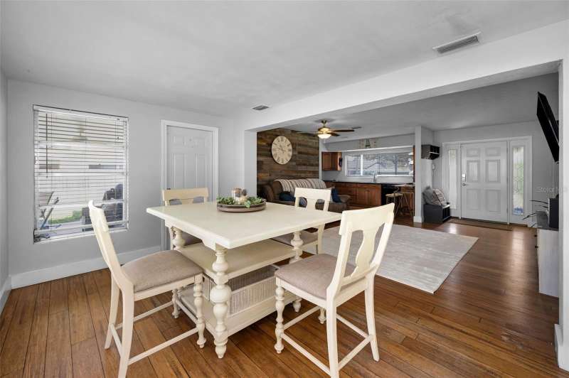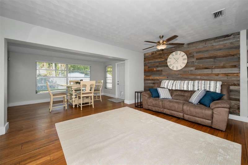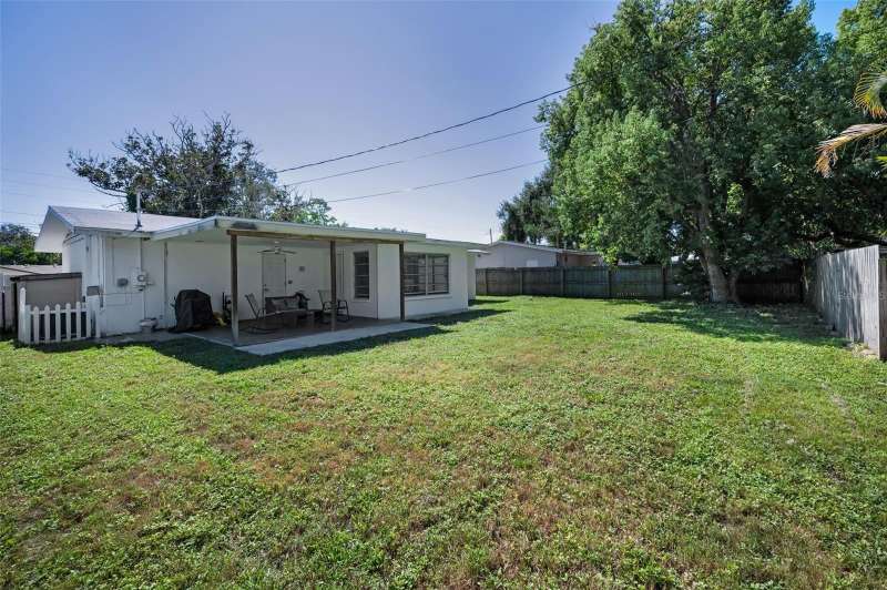 BACK ON THE MARKET! BUYERS FINANCING FELL THROUGH! THEIR LOSS IS NOW YOUR OPPORTUNITY!!Welcome to this cozy beautiful home that boasts an open floor plan for convenience and/or easy entertaining. The bright and spacious floor plan features a kitchen that opens to a great room with wood flooring and a stylish accent wall. Situated behind is a great space for a dining area or extra living space with large windows that overlook the generously sized fenced -in backyard. The kitchen features wood cabinets, subway tile and another large window; allowing an abundance of natural light. The primary bedroom and second bedroom offer trendy wood floors, and each have 2 windows showcasing more natural light. The bathroom offers beautiful granite countertops and a vessel sink. The wide-ranging backyard is perfect for entertaining, playtime or relaxation. AC installed in 2023. NEW IRRIGATION SYSTEM operated by a well, installed on the property; inside water supplied by the city. Blackshire Estates is convenient to shopping, restaurants, and other amenities. The home is located 24 miles from Tampa International Airport, approximately 6.7 miles to the Award-Winning Clearwater Beach, and minutes to the very desirable city of Dunedin featuring Honeymoon Island and the popular downtown area. Also in close proximity are the admired cities of Tarpon Springs, & St. Petersburg. This one wont last!