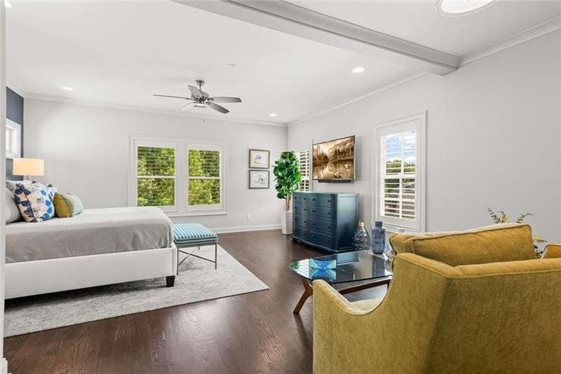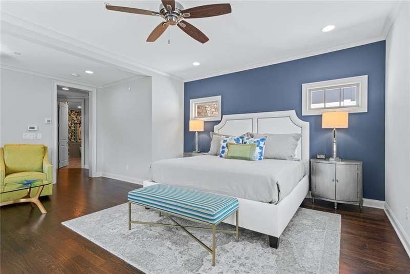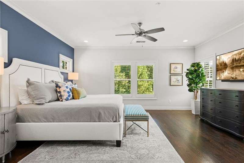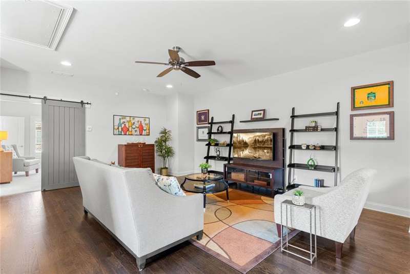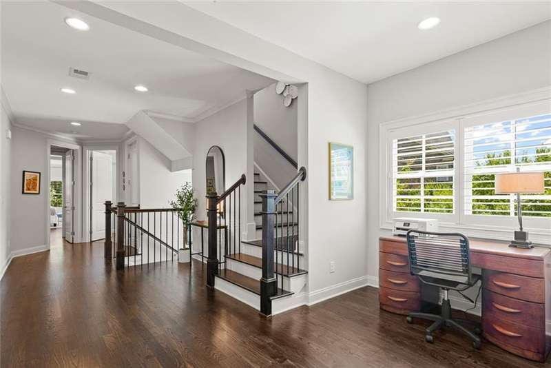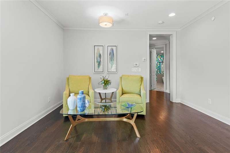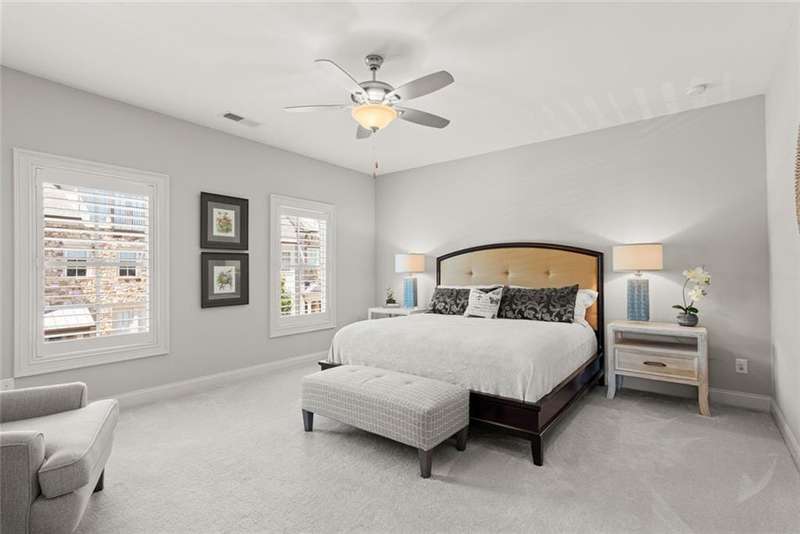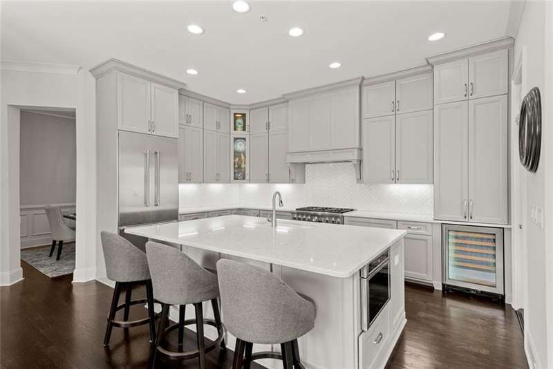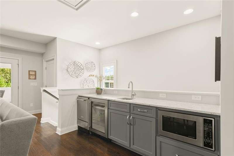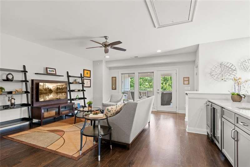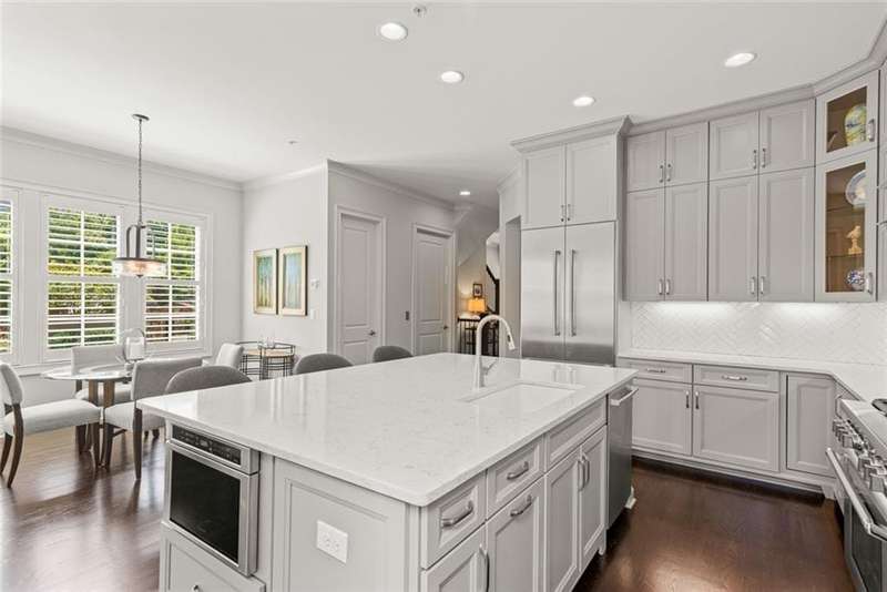 Surrounded by greenery and tucked behind the gates of Abbington at Wildwood, this JW Collection townhome offers a rare blend of comfort, design, and convenience. Crafted with timeless detail and modern ease, its a true retreat just minutes from Truist Park, The Battery, and scenic river trails and quick access to I-75 and I-285. This home has been gently lived in and offers the fresh feel of new construction.Inside, a private elevator seamlessly connects all four levels, while a two-step entry from the garage leads into the heart of the home. The main level showcases a chefs kitchen with Thermador appliances, a warming drawer, double-stacked soft-close cabinetry with integrated organization, a walk-in pantry, wine cooler, and an oversized breakfast bar. This level also offers a formal dining room, powder bath, drop zone, and coat closet. The layout flows to a generously sized deck, perfect for entertaining or relaxing outdoors.Throughout the home, thoughtful finishes such as designer paint colors, upgraded lighting, custom drapery, plantation shutters, and an additional Rheem water heater enhance everyday living.Upstairs, the expansive primary suite offers a peaceful retreat with a sitting area, dual walk-in closets, and a spa-inspired bath with soaking tub, His-n-Hers vanities, closets and water closets. A spacious ensuite bedroom and daylight laundry room with Samsung appliances and built-in storage complete the level. The top floor is designed for year-round enjoyment, with a covered patio featuring a stone fireplace and mounted TV, plus a game room with wet bar and private guest suite. On the terrace level, enjoy a game room, hidden storage behind a custom bookcase, flexible space and an additional private patio open to a fenced green space perfect for play space or furry friends. Positioned on one of the communitys largest end-unit lots, the home backs to lush woodlands with private trail access to Cochran Shoals and the Chattahoochee River. Community amenities include a private park with fireplace, fenced dog area, and ample guest parking right at your front door.