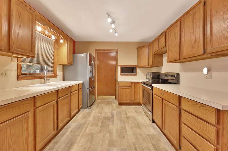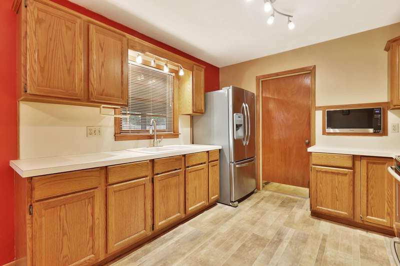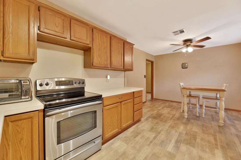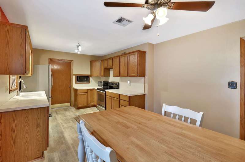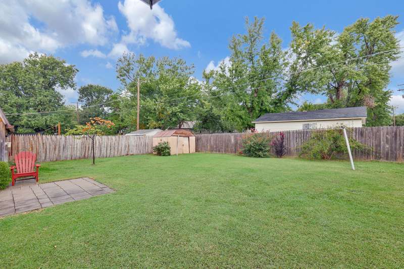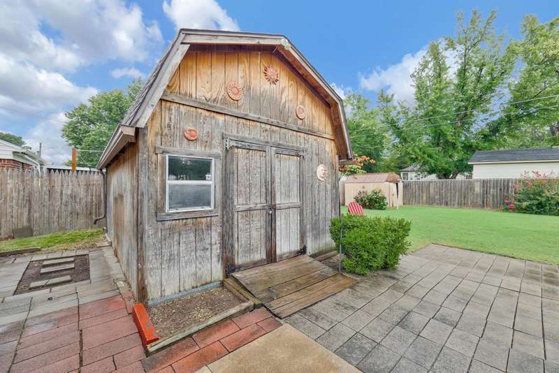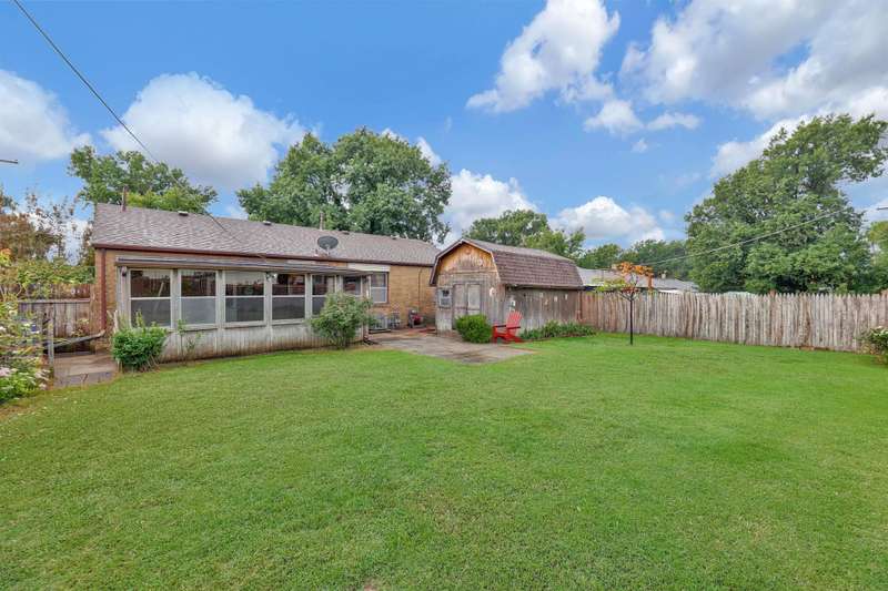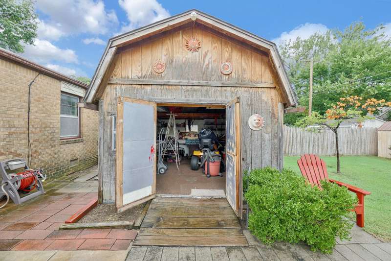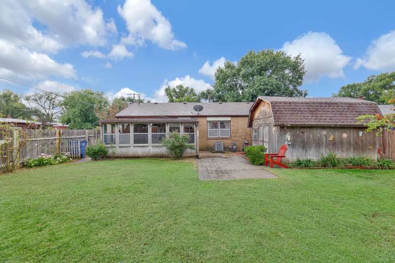 Charming 2-bedroom, 1.5-bath ranch-style home located on a spacious corner lot. This brick beauty features a large kitchen with a roomy eating area overlooking the backyard, abundant counter and cabinet space, and cabinets with pull-out shelvesperfect for family meals and entertaining. Modern stainless steel appliances complement the kitchen's functionality. Original hard wood floors under the carpet and a built-in bookcase in the living room. Enjoy the covered front porch or step out back to a screened-in porch and a paver patio, ideal for outdoor relaxation and gatherings. The large shed with electricity offers a fantastic workspace or hobby area, and smaller metal shed for your lawn equipment. Additional highlights include an attached one-car garage, a newer hot water heater, washer and dryer remain, and a wood privacy fence with a double gate providing easy access to backyard. Conveniently located with quick access to highways, this home combines practical features with charming appeal. Great opportunity for first time buyer or for someone wanting to downsize to a more manageable home. Dont miss out on this wonderful find!