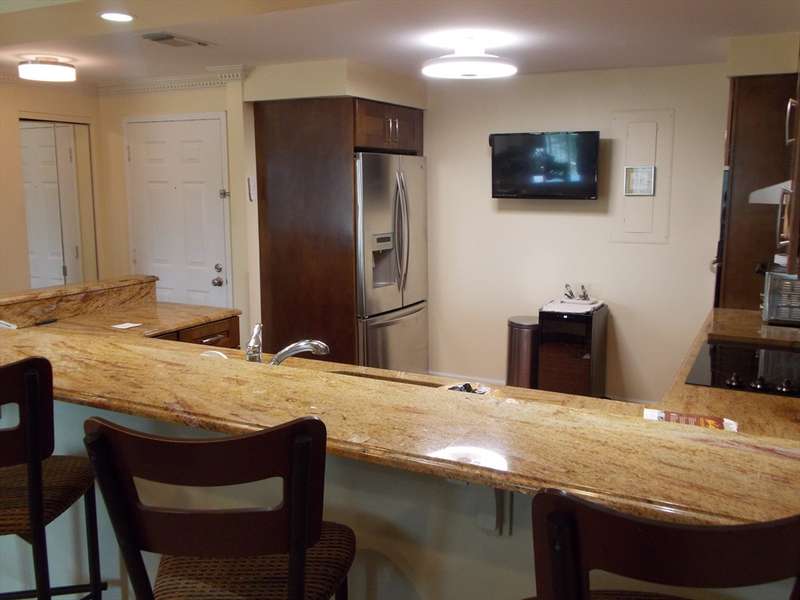 Sought after Seaport Landing. Originally a 2 bedroom converted to a large 1-bedroom condo with 2 full baths minutes from beaches. Step into this updated unit that offers a modern kitchen that features stainless appliances, eye catching custom made top end dark walnut cabinets, accented with color coordinated glass tiles, & oversized peninsula bar! Spacious living room with new sliding doors to a private balcony affording plenty of natural sunlight, million dollar ocean views & a great spot to enjoy gorgeous sunsets over Boston skyline. Spacious primary bedroom with full bath, also private access to balcony & large walk in closet. In-Unit Laundry. Heating is a heat pump with cooling for AC. Building amenities include ramp, 2 elevators, professional management, fitness room, and function room. Bonus: indoor parking with large storage bin and one outdoor parking spot. On site gym facility & function room. Adjacent to Lynn Heritage State Park & boardwalk, Lynn Ferry, and MBTA.