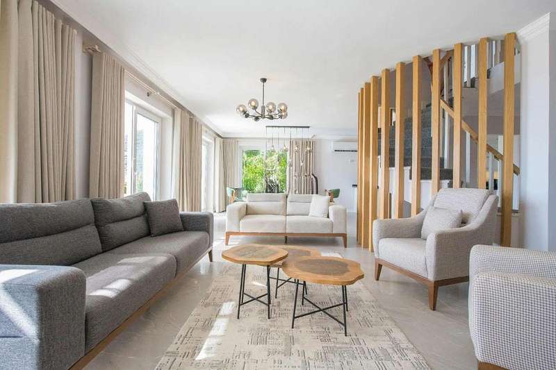 The villa is fully equipped with high-quality furniture and white appliances and is ready for moving in. The general layout and details in the design provide a sophisticated ambiance and ensure comfort.