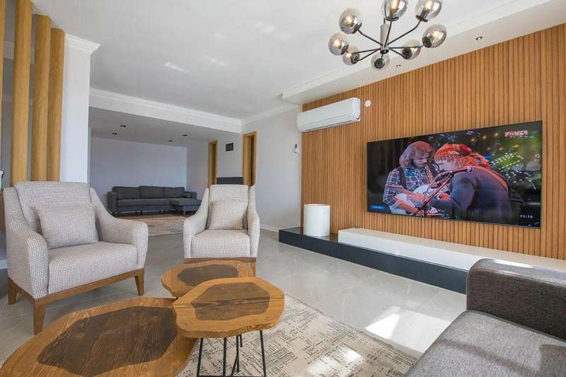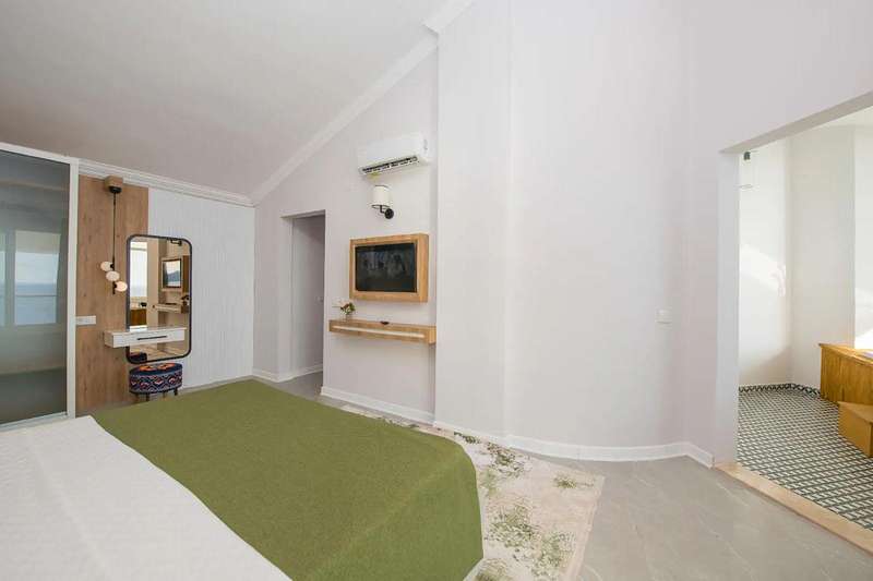 The villa for sale in Kalkan, Turkey is located 4 kilometers from the town center, where you can find cafes, restaurants, pharmacies, banks, and supermarkets. In addition, the beach is 6 km and Dalaman International Airport is 123 km away.