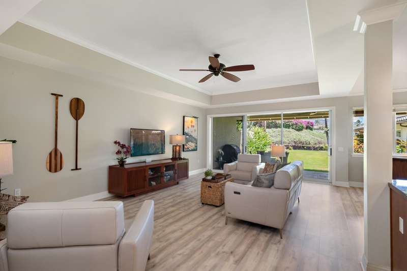 Welcome to 139 Kai La Place at Kai Malu -- a 3-bedroom, 2.5 bath townhouse beautifully upgraded with new (2025) wide-plank vinyl flooring, new carpeting, and more! Owners will love the outstanding privacy provided by this wonderful home, while still enjoying ocean views from an upstairs bedroom! Thanks to a very large lawn off the downstairs Lanai no other homes face this Townhouse, making the main lanai and yard area a very quiet, private sanctuary. The sliding pocketing lanai doors further enhance the experience. The Townhouse also has its own driveway, rather than the common shared driveway for the 2 car garage. In 2025, the monthly electric bill averaged only $37.82 per month, thanks to the Tesla photovoltaic system including 20 panels and a Tesla Power Wall. Stainless steel Kitchen Aid & GE Profile appliances, a reverse osmosis drinking water system, granite countertops, and stone flooring complete this cabinet filled kitchen. This wonderful residence is offered furnished, including the living room, dining area, office, lanai, and bedroom furniture (including a Sleep Number bed), and more. The only exclusions are the items hanging on the walls. Just arrive with your suitcase! Additionally, Kai Malu has what may be the most impressive, inviting swimming pool area in all of Wailea! You can even do 25-yard laps. Check out the pictures and stop by to see this panoramic outlook for yourself. The ocean and sunset views are incredible, the open-air gym (with those same incredible views), steam room, and sauna are the cherries on top! Contact your favorite Realtor to schedule a showing!