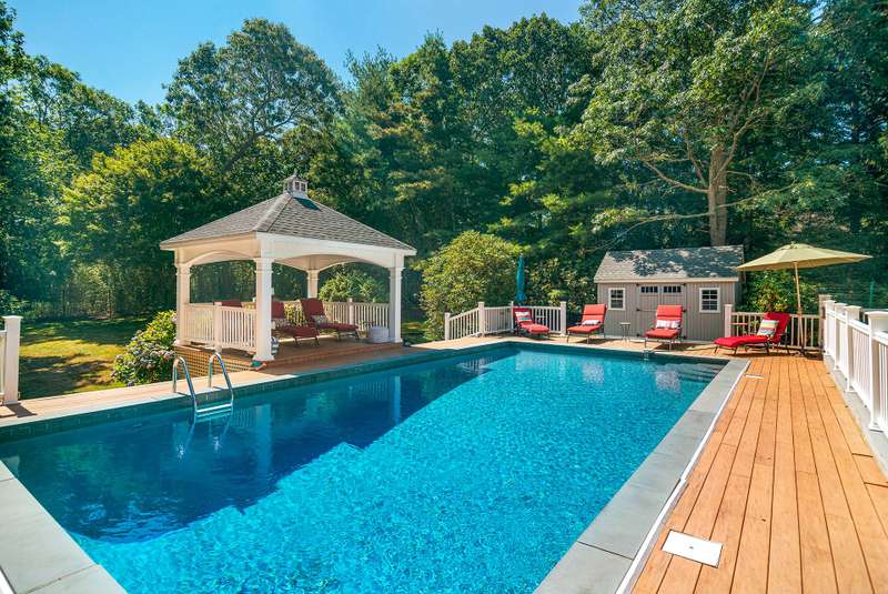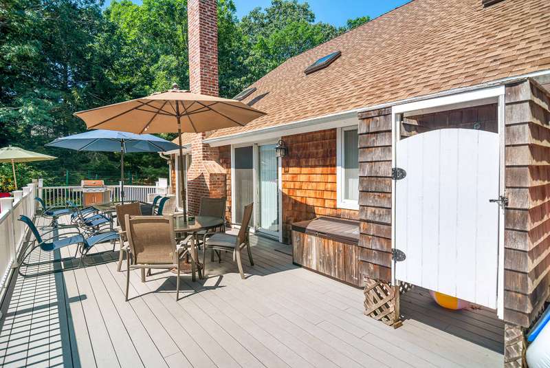 Rental registry # 25-0,309 - Charming, nice, and clean four bedrooms, two bath modified saltbox in the Northwest part of East Hampton. The home is very close to bay beaches and offers lots of privacy. Amenities include an 18 x 36 gunite heated pool and central air. Listing ID: 737407