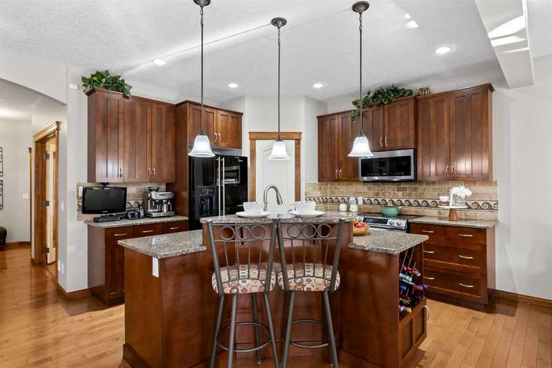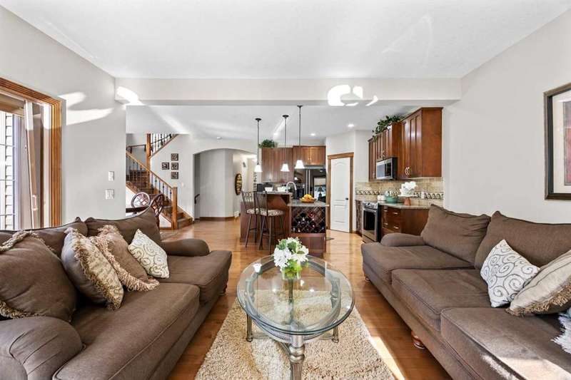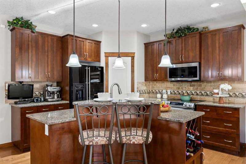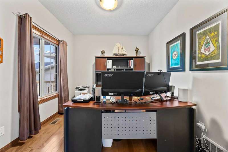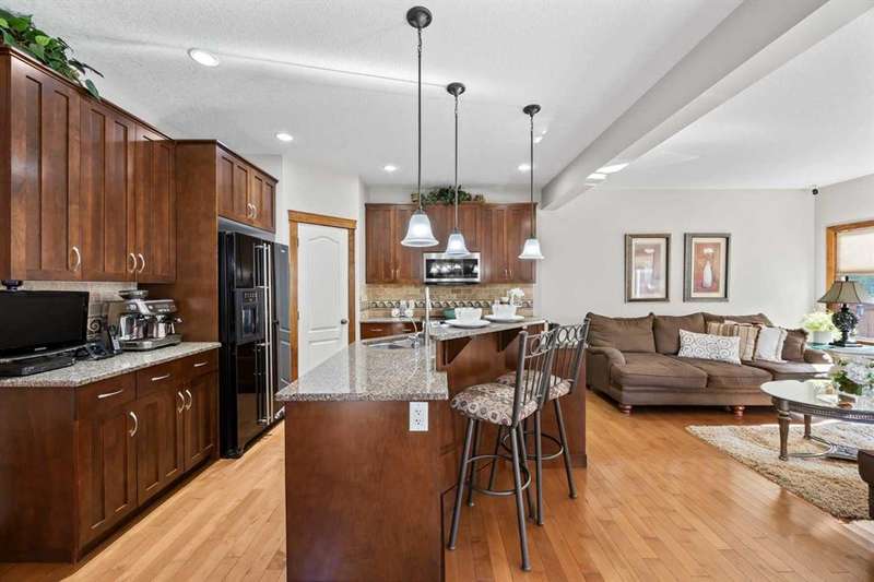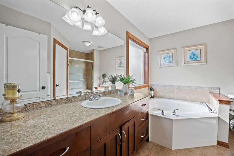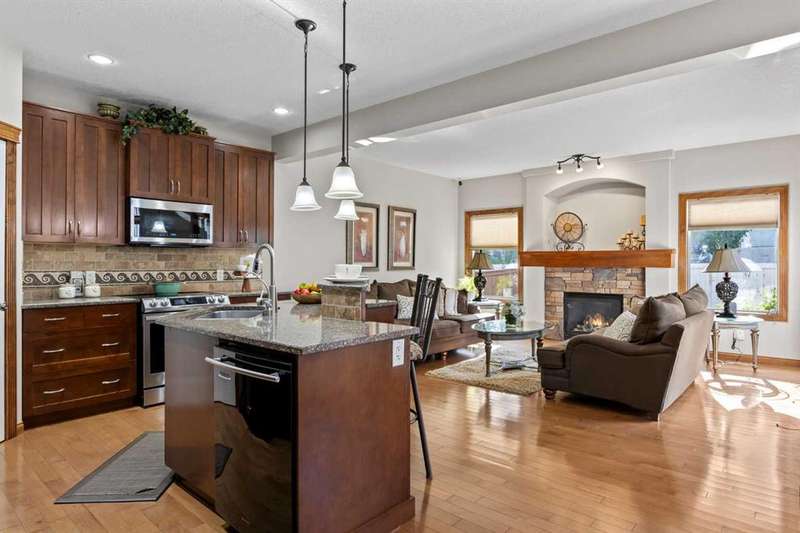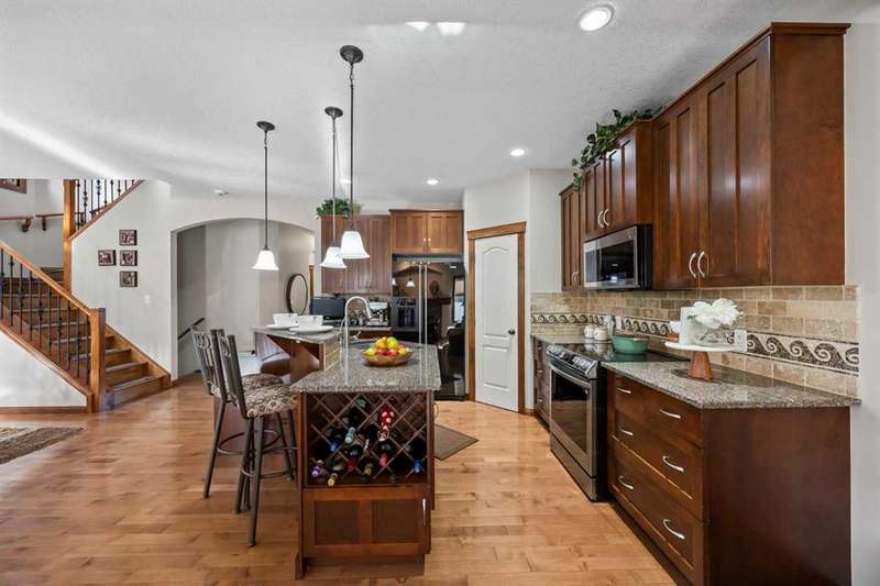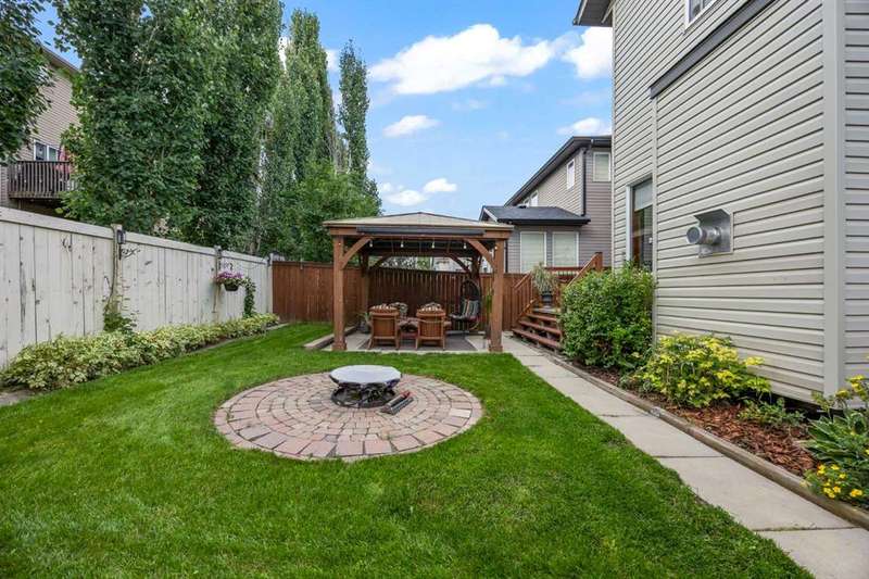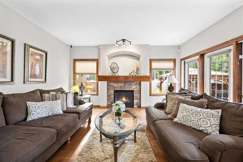 Welcome to 263 Everoak Drive SW – A Warm and Inviting Family Home in Evergreen. Step into this beautifully maintained home and feel instantly welcomed by its thoughtful layout and cozy charm. The main floor is designed with family living in mind, featuring a spacious home office perfect for remote work or homework sessions, and a convenient laundry room to make daily chores a breeze. The heart of the home is the open-concept kitchen and living area, where you'll find stainless steel appliances, a built-in wine rack, corner pantry, and plenty of counter space for meal prep and entertaining. The living room is anchored by a stunning gas stone fireplace with a custom niche above—ideal for showcasing family photos or seasonal décor. Rich hardwood flooring flows throughout the main level, adding warmth and elegance. Enjoy seamless indoor-outdoor living with two sets of double doors—one from the living room and another from the dining area—leading to the west-facing backyard. Whether you're hosting summer BBQs or enjoying quiet evenings, the deck, patio, pergola, and fire pit create a perfect outdoor retreat for the whole family. Upstairs, you'll find three generously sized bedrooms, including a serene primary suite with walk-in closet, plus a bonus room that’s perfect for a playroom, media space, or teen hangout. The upper hallway also features hardwood flooring, and the two full bathrooms are finished with tile. The fully finished basement offers even more space with an additional bedroom, a full bathroom, and a large recreation room—ideal for guests, hobbies, or family movie nights. Located in a friendly, family-oriented neighborhood, just minutes from Fish Creek Park, this home is close to schools, parks, and all the amenities your family needs. Recent updates include a new roof (2023), hot water tank (2022), and newer microwave and stove (2022) for added peace of mind. Don’t miss your chance to make this wonderful home yours—schedule a private showing today and experience all that Evergreen has to offer!