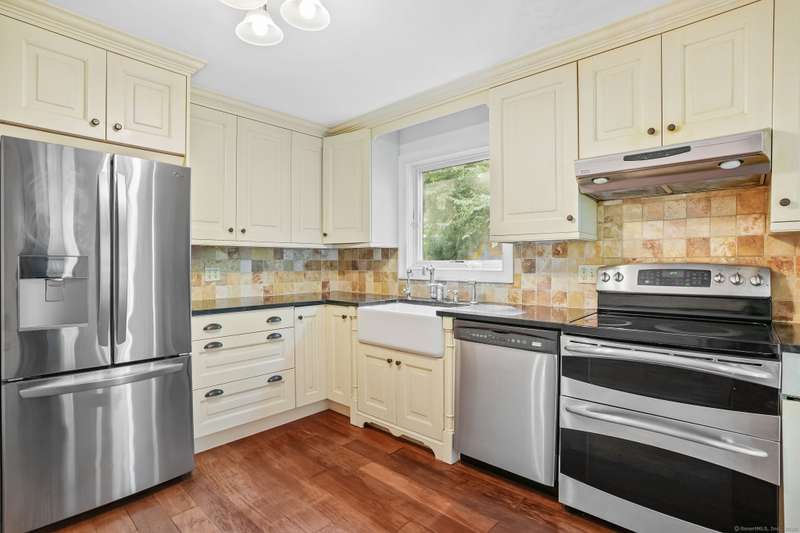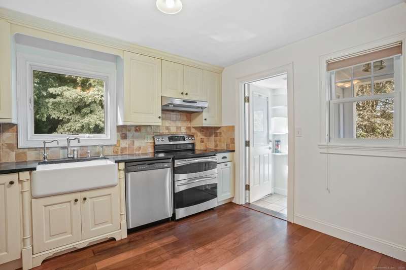 Set in Fairfield's sought-after University neighborhood, this 3-bedroom, 2-bath home combines timeless style with modern updates. A circular drive, cedar clapboard siding, and a striking mahogany entry door contribute to its exceptional curb appeal. Inside, hardwood floors span the main level, where oversized windows brighten the living and dining rooms. The eat-in kitchen features granite counters, stainless steel appliances, and a convenient mudroom. A first-floor bedroom adds flexibility. Upstairs, two additional bedrooms share a full bath. The oversized composite deck overlooks the expansive, private backyard-perfect for entertaining or relaxing outdoors. Additional highlights include central air and a partially finished basement for additional space. With easy access to shopping, Metro-North, and highways, this home delivers comfort and a prime location.