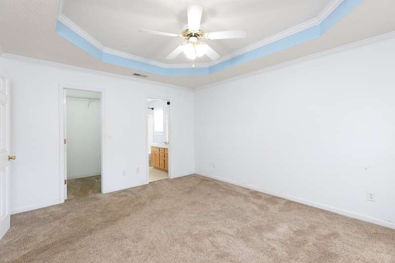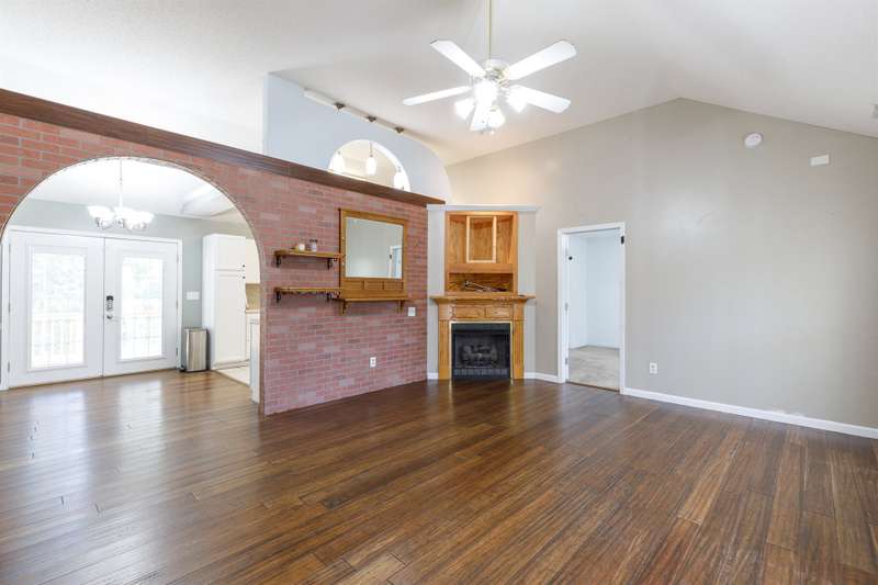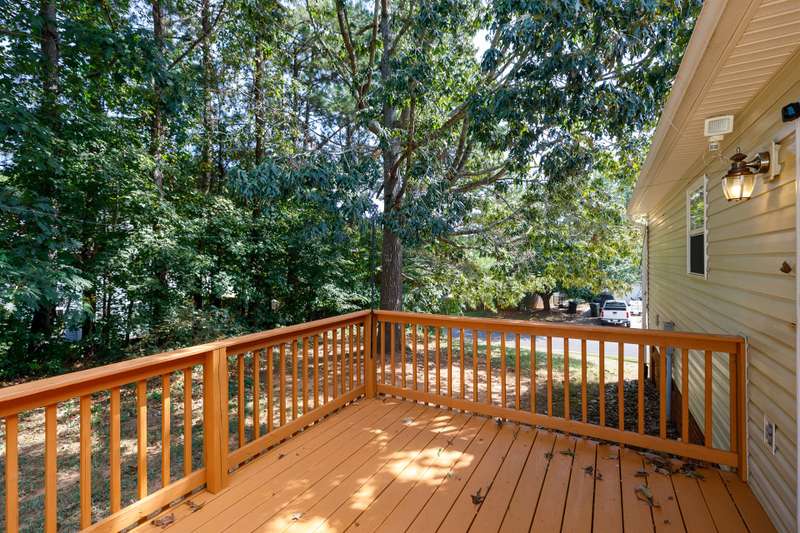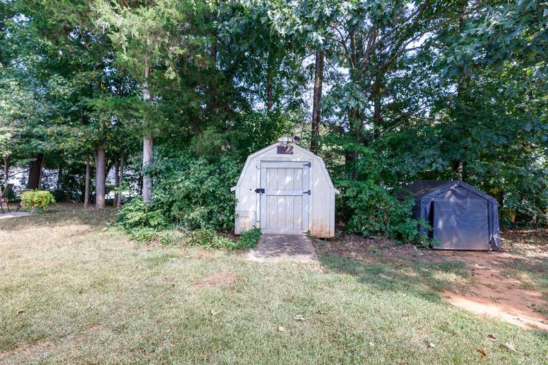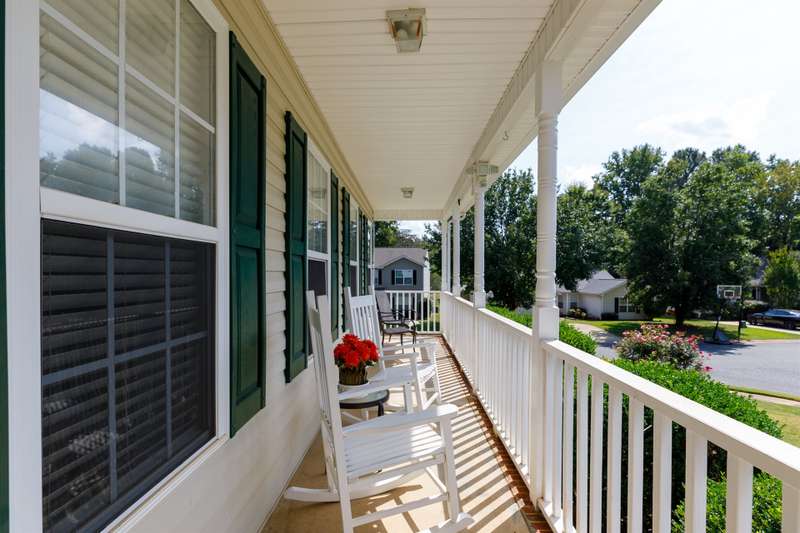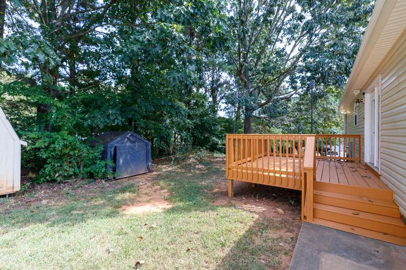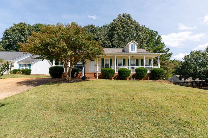 Nestled in the welcoming Barron Estates community, this charming ranch offers relaxed living with thoughtful details throughout. Step inside to a bright, open living room with vaulted ceilings and a cozy gas-log fireplace, creating a warm centerpiece for gatherings. The split-bedroom layout gives the primary suite its own retreat, complete with a tray ceiling, walk-in closet, dual sinks, and a garden tub for unwinding. Outside, enjoy classic southern charm on the huge front porch that spans the full width of the home, or head to the back deck for more private outdoor living. Sitting on a corner lot with a handy storage shed! Just minutes from shopping and dining.