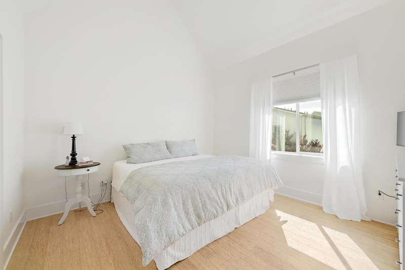 Sunlight pours through large living room windows, complemented by high ceilings that give the open-concept floor plan a bright, airy feel. Step into the beautiful private courtyard to extend your living space, perfect for morning or casual evenings with friends. The kitchen blends timeless charm and modern function with shaker-style cabinetry, granite countertops, and stainless appliances. An eat-in bar offers both a casual dining spot and serving space. Refrigerator conveys.