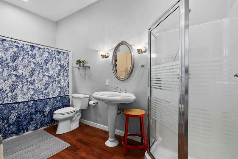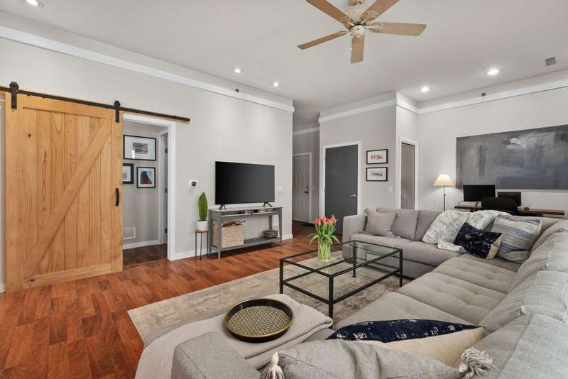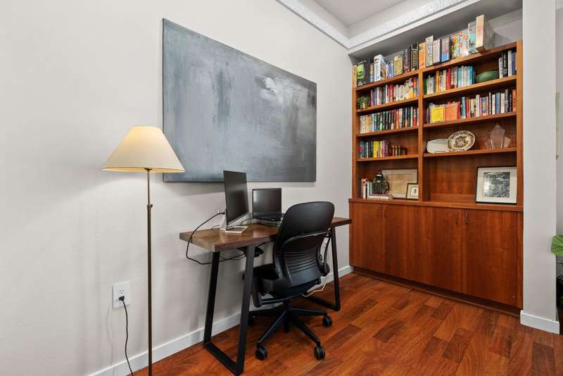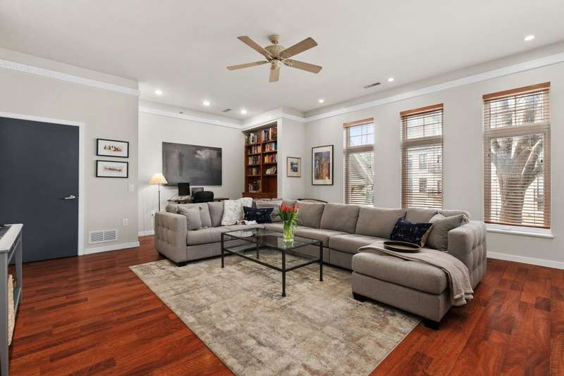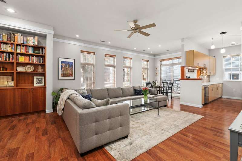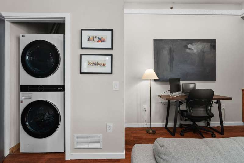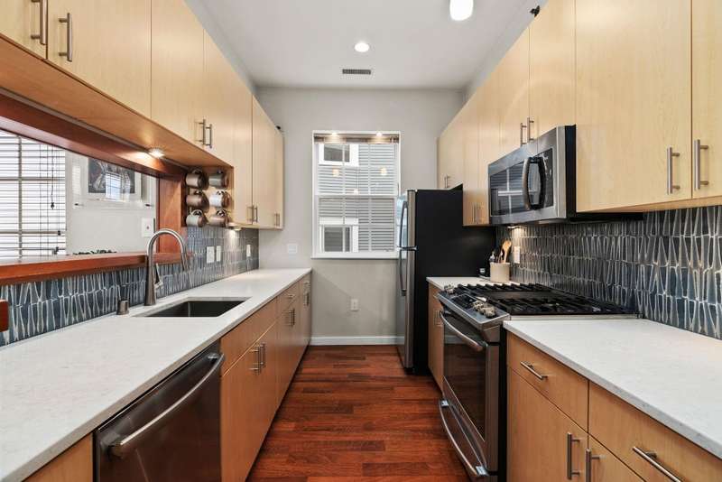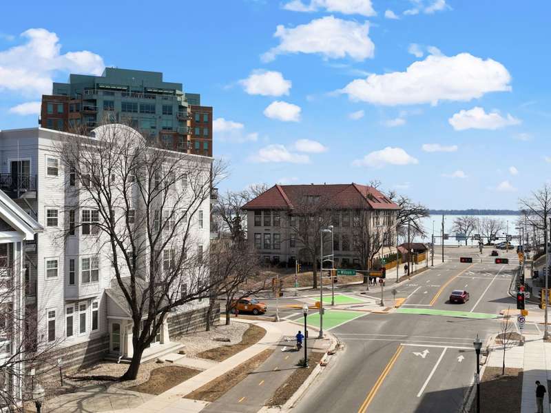 Bright and spacious elevated corner unit with no shared walls and soaring ceilings in a prime downtown location. The thoughtfully updated kitchen features quartz countertops, stainless steel appliances, an artistic backsplash, gas range, and breakfast bar. The open layout includes a sunny living area with a cozy office nook, plus a rare half bath for guests. The large primary suite offers tall windows, a walk-in closet, and a full bath with separate tub and shower. Enjoy in-unit laundry, a private patio, deeded garage parking, and same-floor climate-controlled storage. Just steps from Lake Monona, Brittingham Dog Park, and all downtown Madison has to offer.