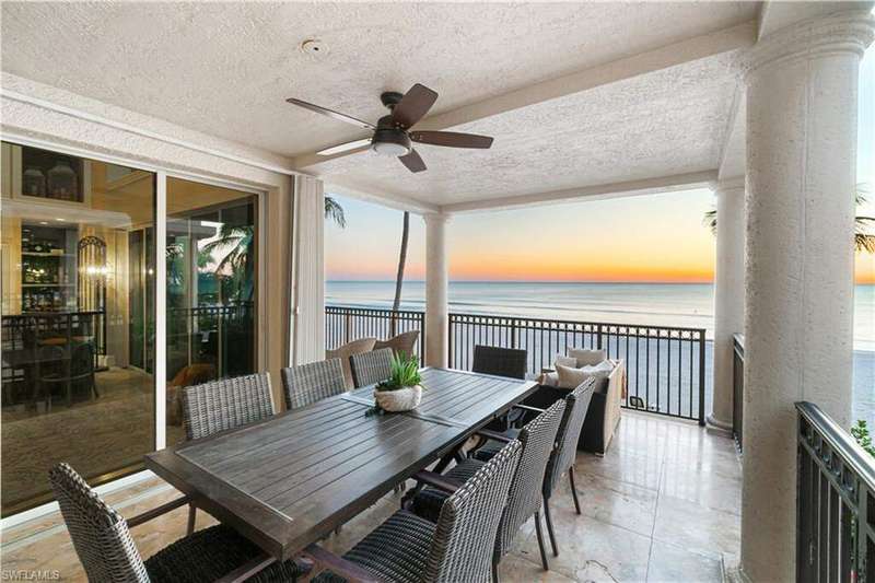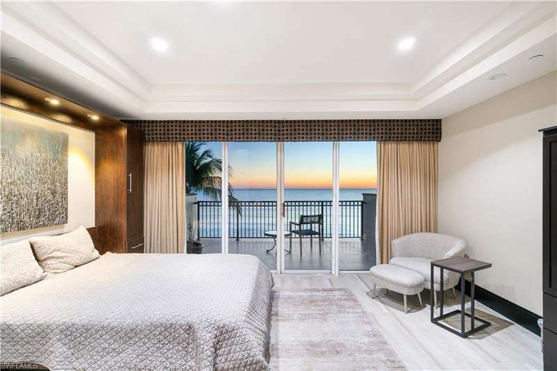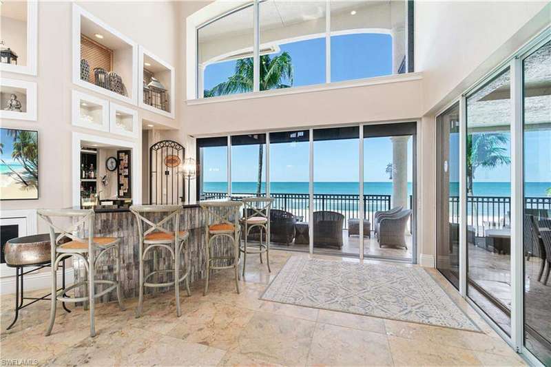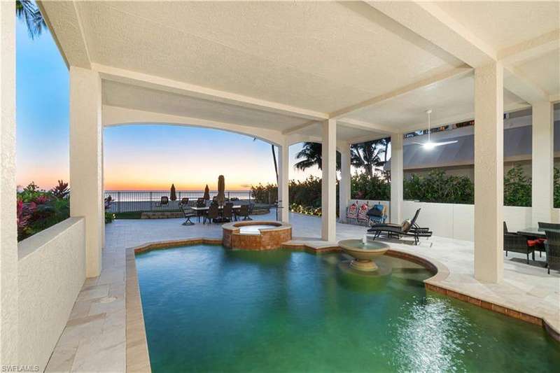 Beautiful direct beachfront home on Bonita Beach! Boasts spectacular Gulf views from nearly every window. This 4618 sq. ft. fortress is crafted with marble floors, tray ceilings, hurricane impact windows/sliders, HURRICANE SHUTTERS, NEWLY REPLACED PRIVATE ELEVATOR, NEW WATER HEATER & NEW GARAGE DOORS. This residence is an entertainer's dream with 4 bedrooms + den & a bonus room, 5.5 bathrooms & a pool/spa with a new pool heater & a water feature. Enjoy easy access to the beach, while also having a RARE fenced-in backyard that is perfect for pets or extra privacy! The main level offers an expansive lanai, 2 guest bedrooms with en-suite bathrooms, formal dining area with spectacular Gulf views, a wet bar with wine cabinet & a spacious kitchen. Chef's kitchen offers granite counters, double oven & a gas cooktop. The 3rd level includes a guest bed/bath, den & expansive primary bedroom with a sitting area, wet bar & private balcony to enjoy the spectacular sunsets. The 4th floor is perfect for a private guest wing with a media room, bonus room/bath, sundeck with phenomenal Gulf views & a sunrise balcony to perfectly capture both the Gulf & Bay views. Close to several fantastic restaurants and only a 10-minute drive to Mercato and the Promenade, with Waterside Shops, Coconut Point, Naples 5th Ave, and the International Airport nearby.