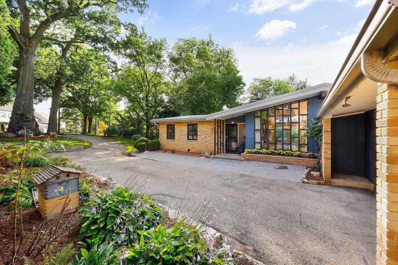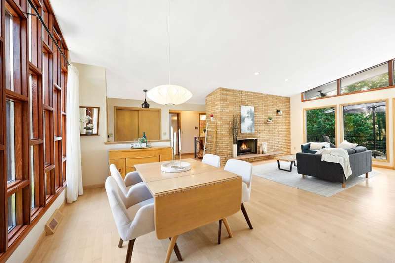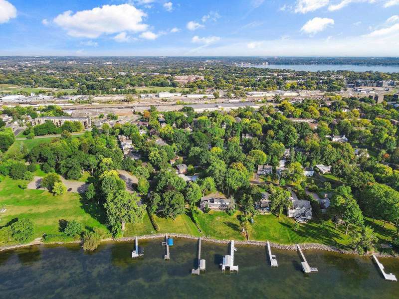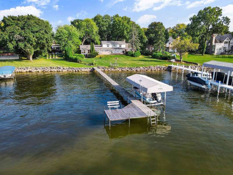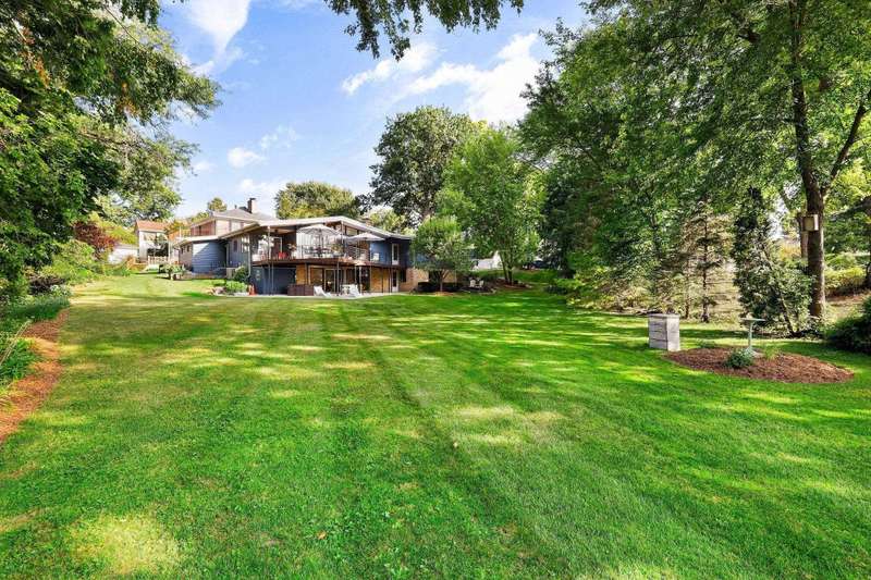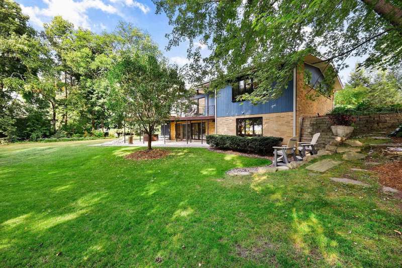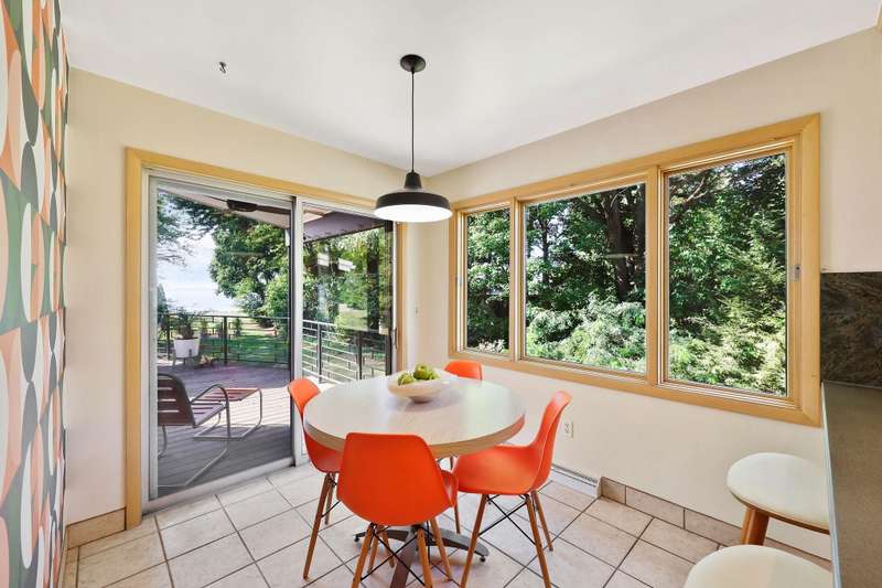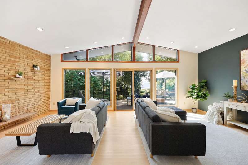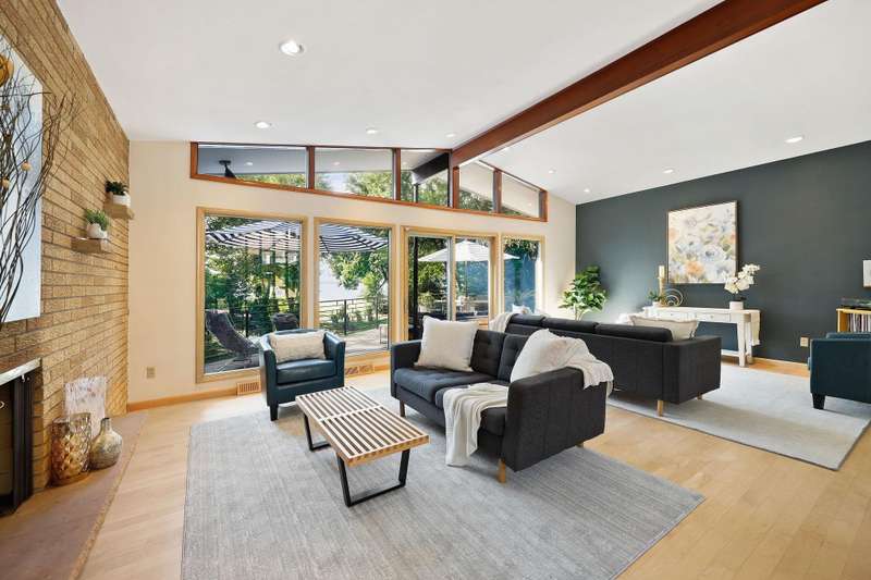 Mid-Century Lakefront Retreat with spectacular water views from nearly every room! This rare architectural gem sits on a gently sloping 0.63-acre lot leading straight to the lake. Features include striking architectural deck with panoramic views, two private ensuite bedrooms, walkout lower level with retro ‘50s kitchenette for entertaining convenience. Live the lakefront dream—privacy, history, and beauty all in one. Additionally, the property includes MBCC privileges and is just minutes from downtown. Notes, there is a pedestrian easement to the lake for Fuller Woods neighbors; see associated documents for details. There are two bee hives on the property. Chemical free lawn.