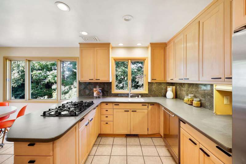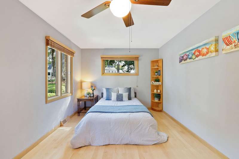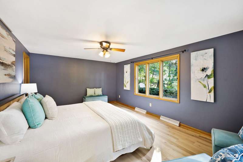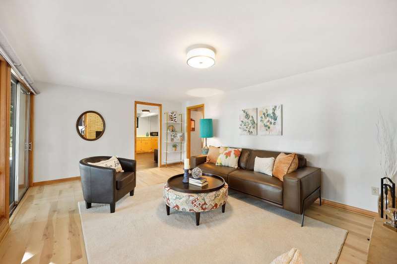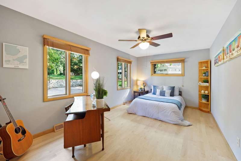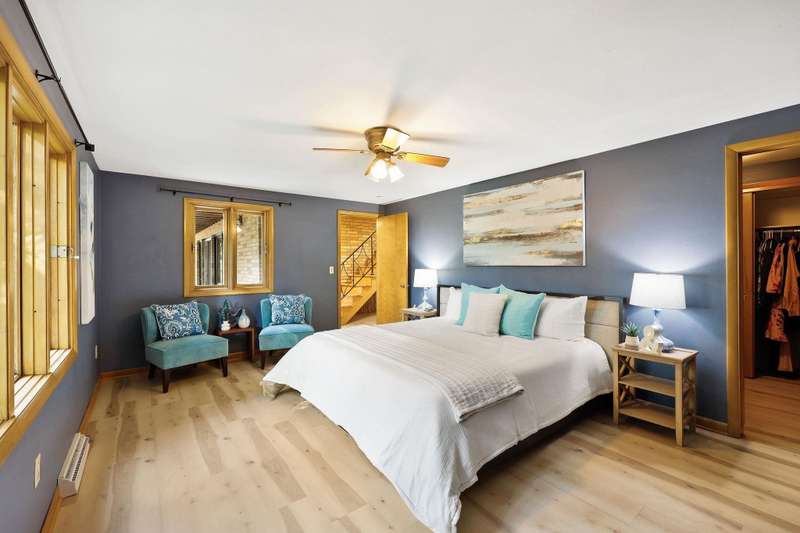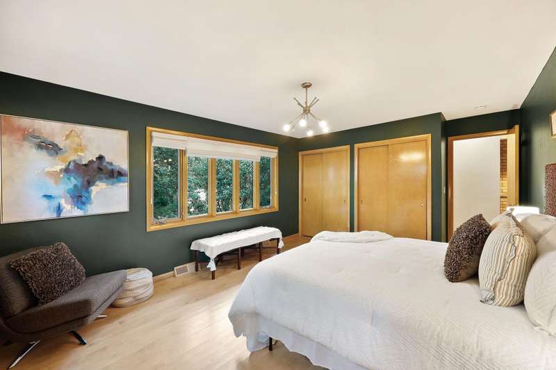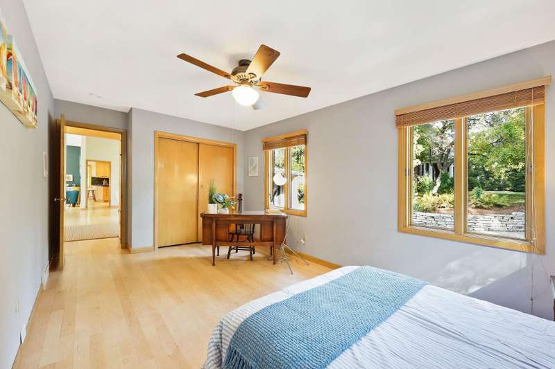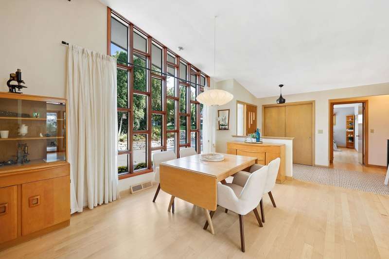 Mid-Century Lakefront Retreat with spectacular water views from nearly every room! This rare architectural gem sits on a gently sloping 0.63-acre lot leading straight to the lake. Features include striking architectural deck with panoramic views, two private ensuite bedrooms, walkout lower level with retro ‘50s kitchenette for entertaining convenience. Live the lakefront dream—privacy, history, and beauty all in one. Additionally, the property includes MBCC privileges and is just minutes from downtown. Notes, there is a pedestrian easement to the lake for Fuller Woods neighbors; see associated documents for details. There are two bee hives on the property. Chemical free lawn.