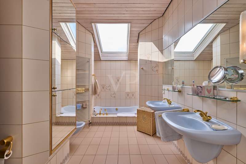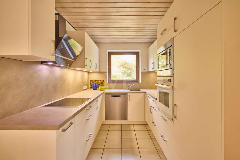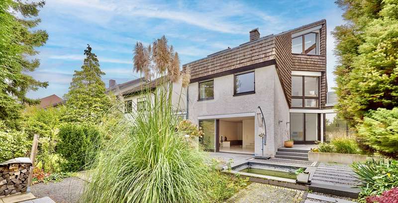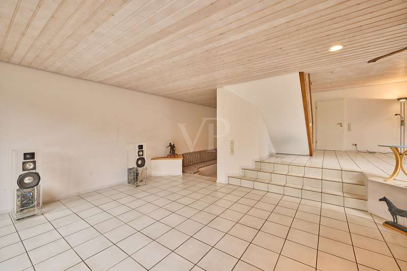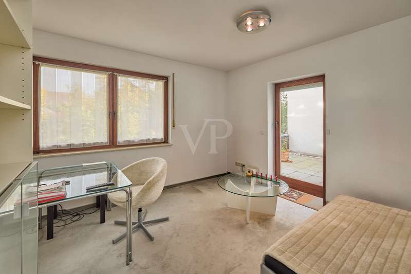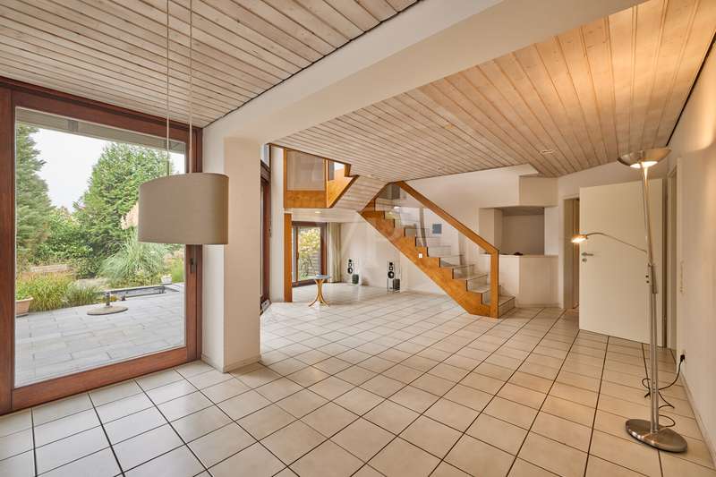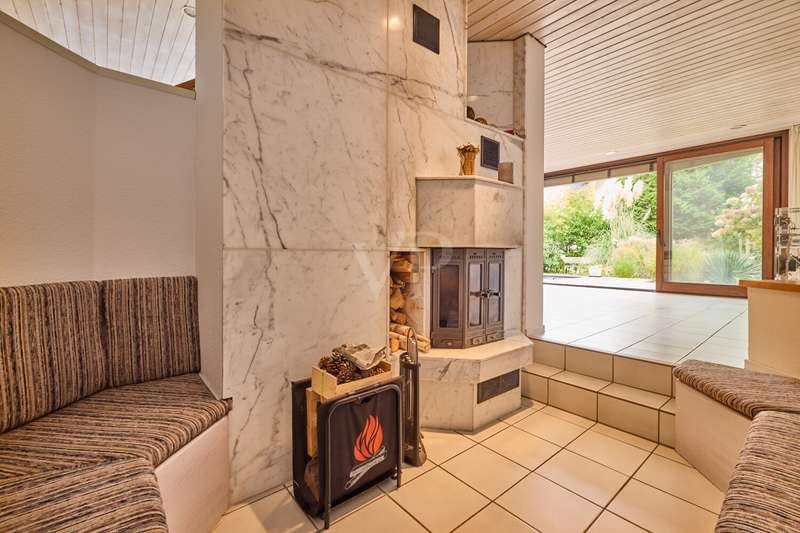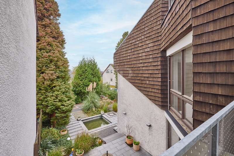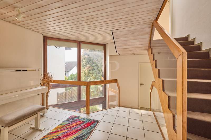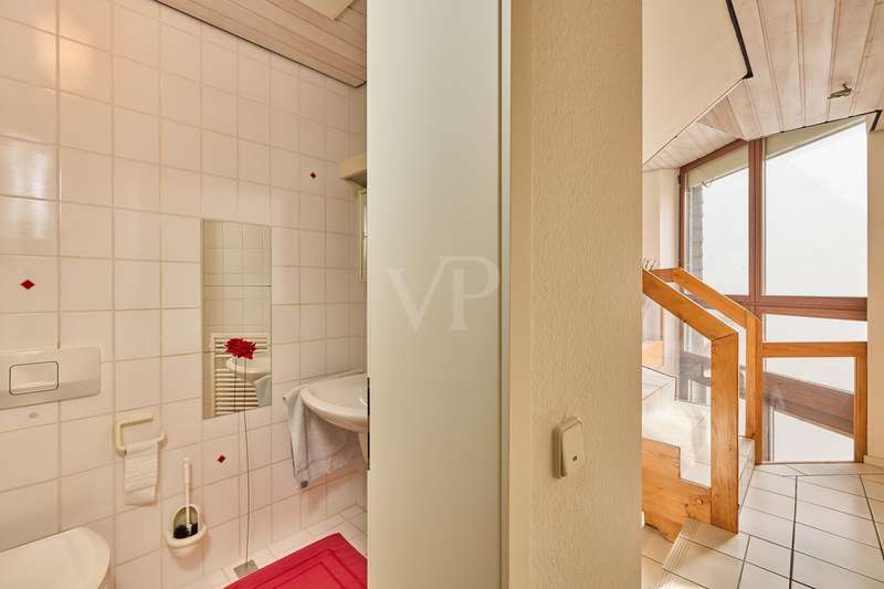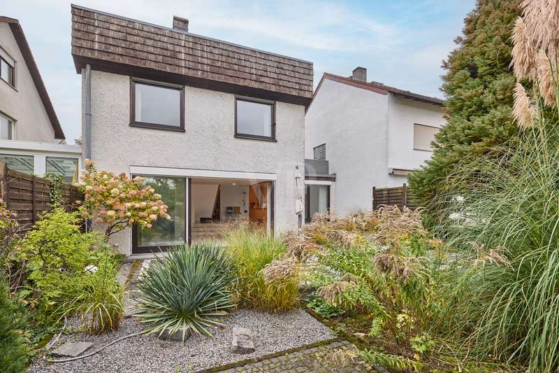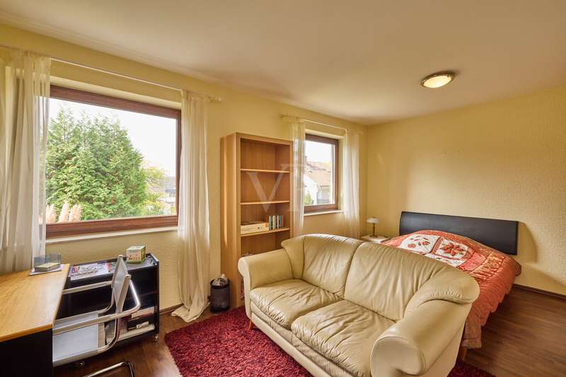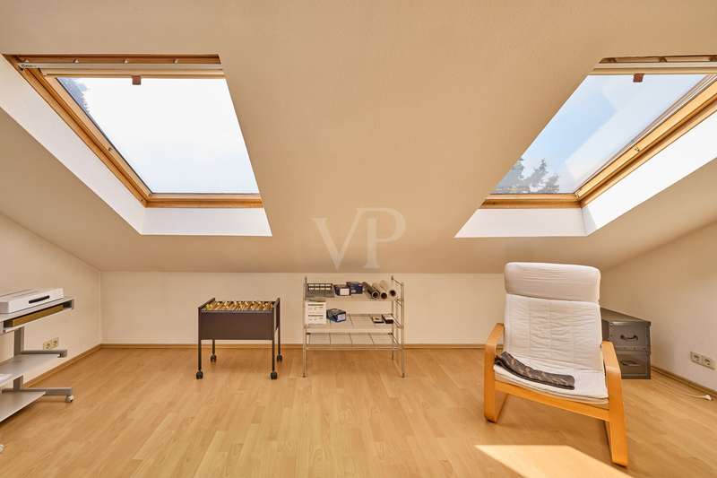 This beautiful single-family home in split-level construction has approx. 203 m² of living space and was built in 1983 on a plot of approx. 330 m². It is located in the popular and exclusive villa colony on the orchard meadows in Darmstadt-Eberstadt. From the prestigious entrance area, the spacious guest WC and access to the garage are on the left. It continues into the inviting, spacious living/dining area with a cozy fireplace seating area and the adjoining kitchen, equipped with a modern, as-new fitted kitchen. From here you also have access to the cellar. From the dining area, you can access the sunny terrace and the low-maintenance west-facing garden, which is also accessible from the living room - here you can enjoy the sun from late morning until the evening hours. A staircase leads to the spacious upper floor. Here you will find a bright room for individual use, a shower room, a gallery and a charming granny apartment with its own spacious terrace. This is also accessible from the outside. The top floor houses a spacious, bright room with a cozy character, a study and the master bedroom with fitted wardrobes, its own balcony and a large daylight bathroom with bathtub. The house has a full basement. There is a laundry room, a spacious storage room, a hobby room and a spa/wellness area with sauna and shower for relaxation and much more. This attractive offer is rounded off by a single garage.