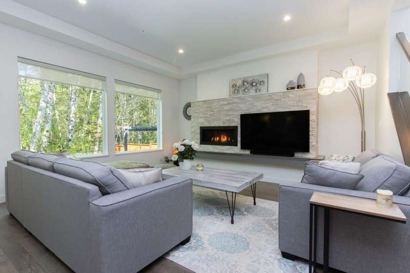 Welcome to this beautifully maintained 3-bed + loft & den family home backing onto a private ecological reserve. Built in 2017 by Benchmark Homes. Featuring a functional & comfortable layout, this home is located in the quiet & sought after neighbourhood of Ravenswood, and includes upgrades like A/C & a built-in Sonos sound system. Enjoy a cozy gas fireplace, stylish gourmet kitchen w/added dining cabinetry, walk-in pantry, & a flex space that could be a 4th bedroom. Outdoor perks include a covered deck w/infrared heater, hot tub, putting green, & artificial turf for easy maintenance. Bonus: stunning mountain views, widened driveway for 3 cars, double-size garage, & spacious crawlspace. Prime central location w/ easy access to trails, river, rec centre, golf, schools, shops, & dining.
