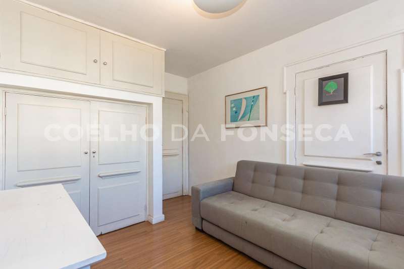 Salas amplas e com grande iluminação natural, em formato retangular que permite a composição de vários ambientes. Com piso original em tacos de madeira e janelões.