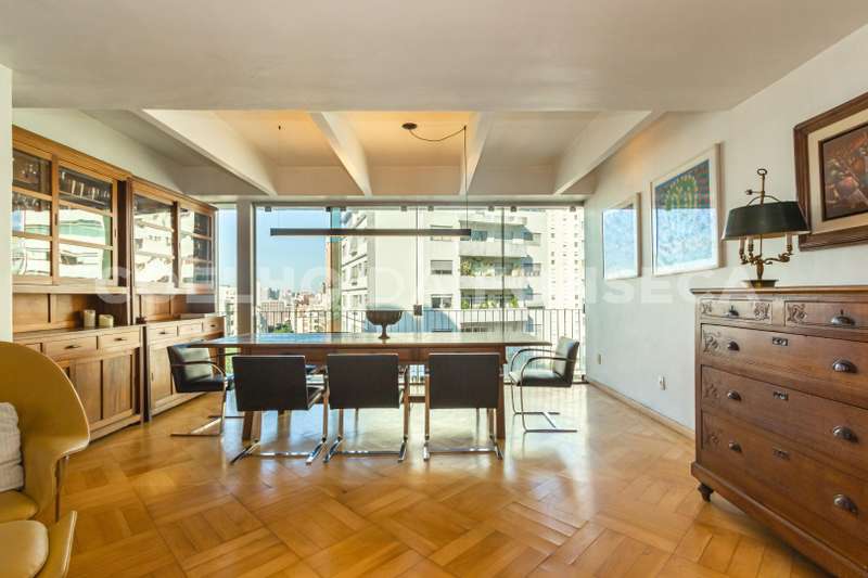 Cobertura no bairro Higienópolis com 616m² área privativa/útil, 5 dormitório(s), 2 suíte(s), 2 vaga(s), 4 banheiro(s), churrasqueira, escritório, terraço, duplex, ar condicionado, dep. de empregados.