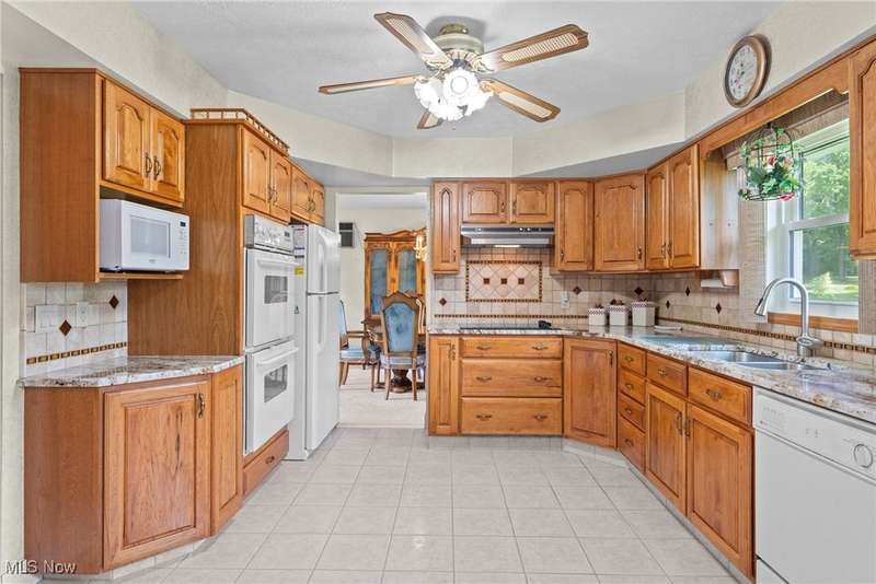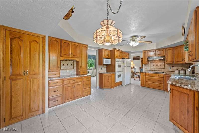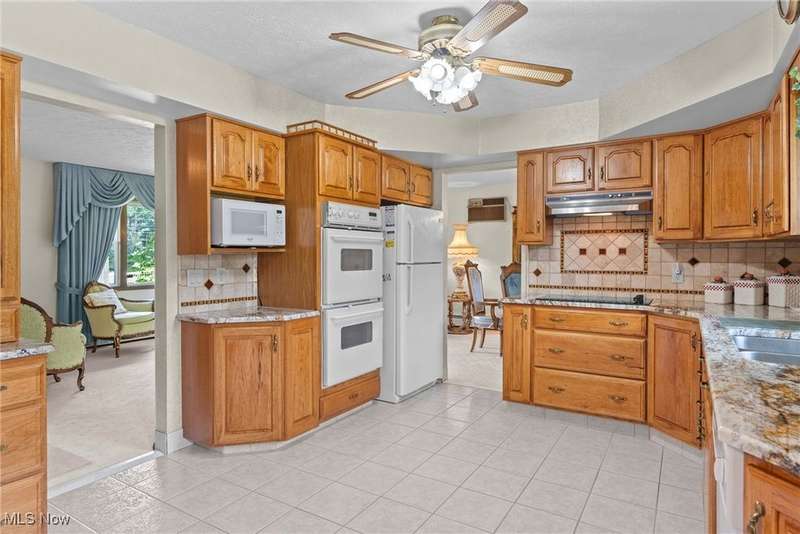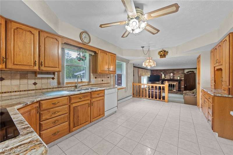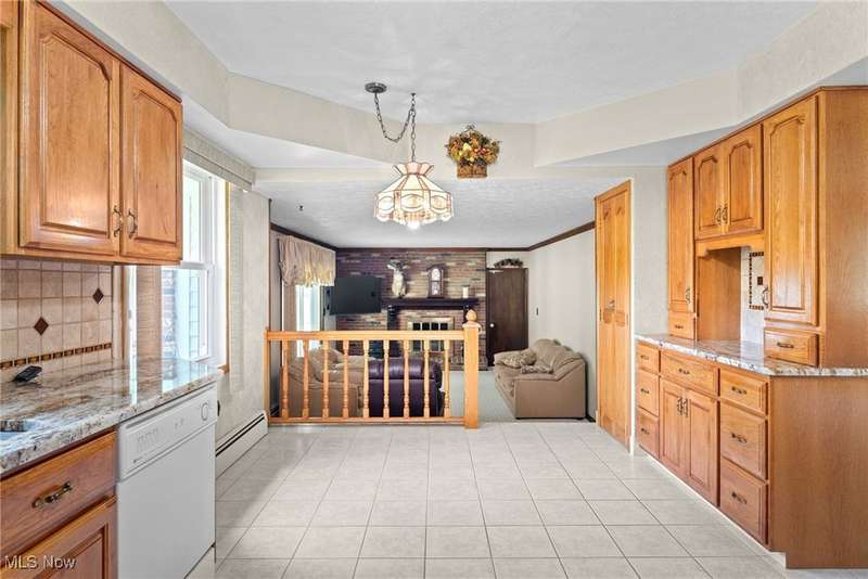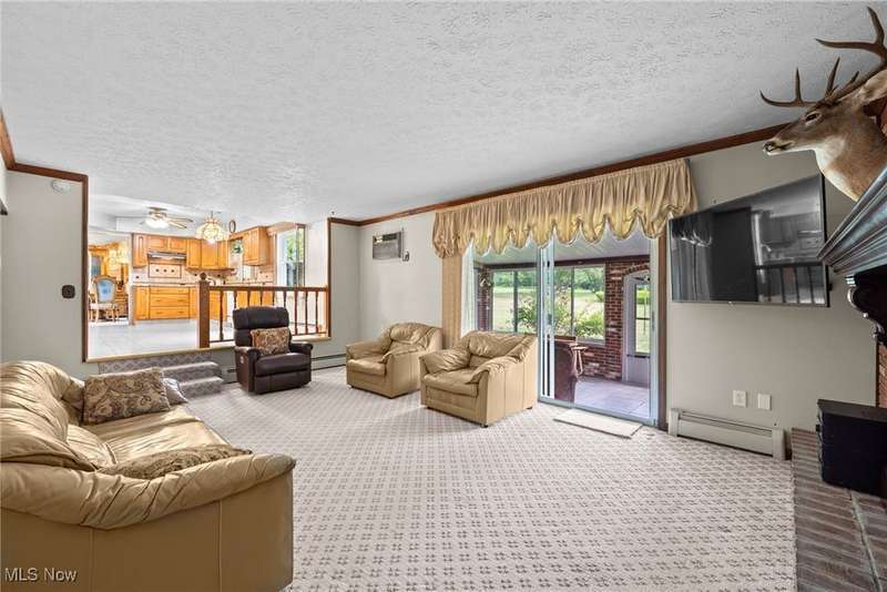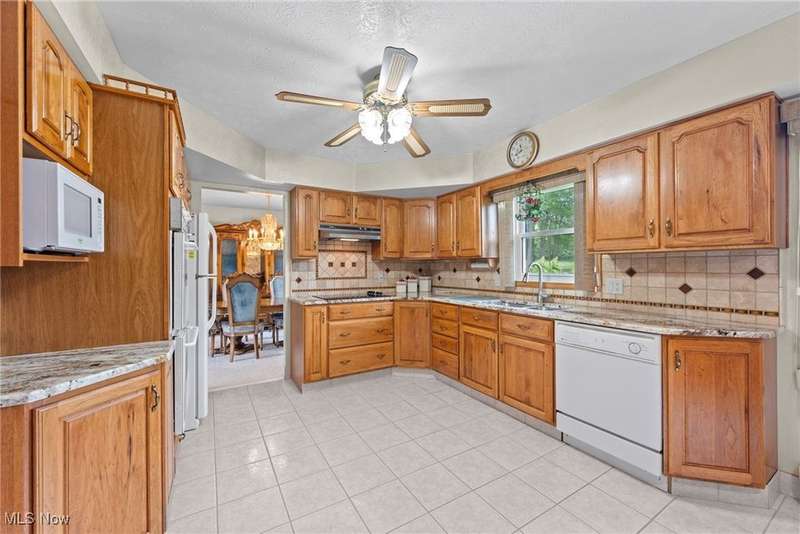 Well Maintained 2-Owner Chesterland Split Level on 1.6 Acre Lot. Great Floor Plan with Open Living-Dining Rooms & Vaulted Ceiling. Updated Eat-In Kitchen with Granite Counters Leads to Step Down Family Room with Fireplace. Patio Doors Open to a Fabulous 3 Season Room Overlooking the Backyard. Upstairs are 4 Bedrooms and 2 Remodeled Full Baths Including the Primary Bedroom with a Private Beautifully Renovated Full Bath. Hardwood Floors on 2nd. Finished Lower Level Recreation Room with Bar. Leafguard Type Gutters Installed. Attached 2 Car Garage Plus Additional Free-Standing 2 Car Garage.