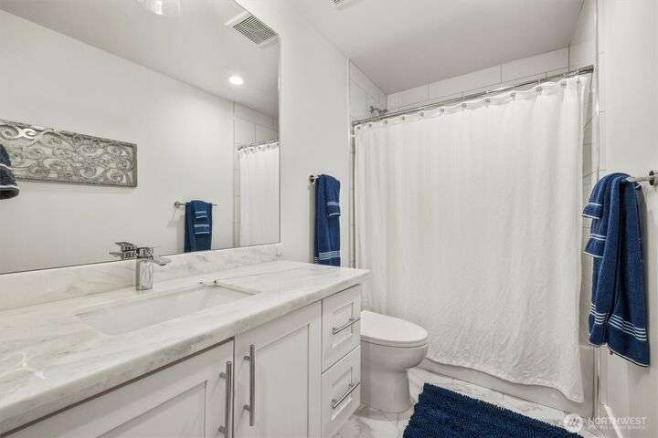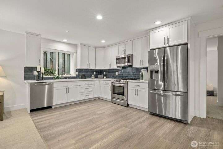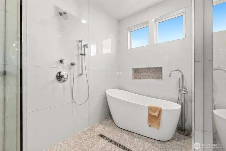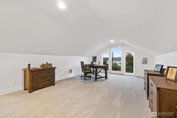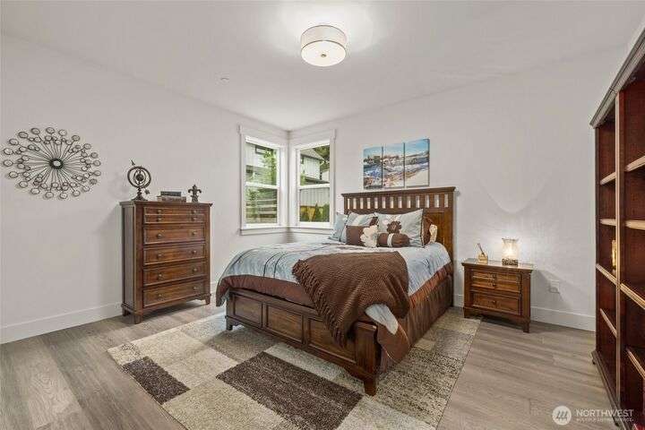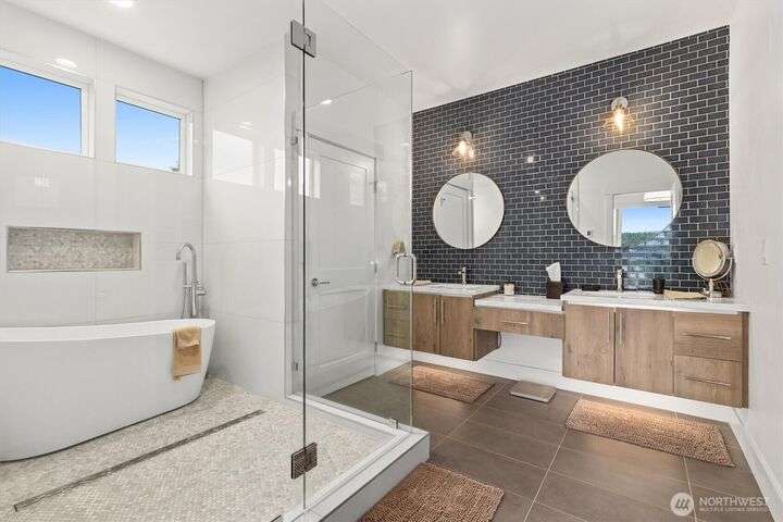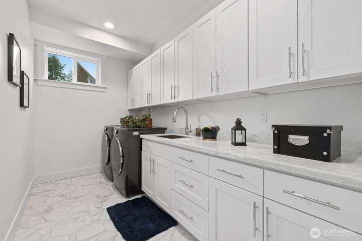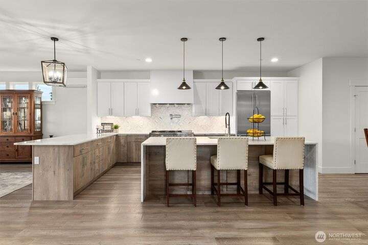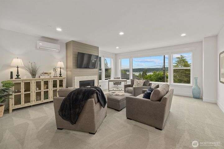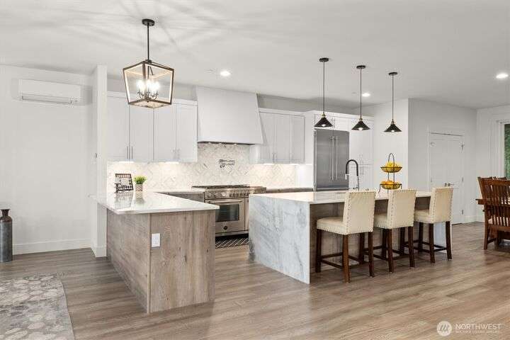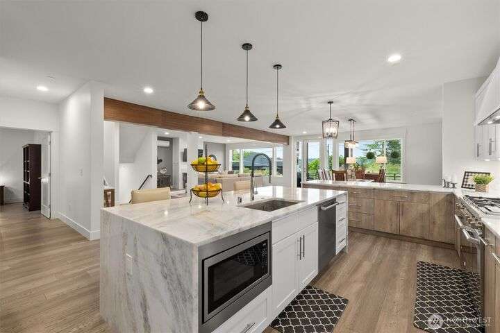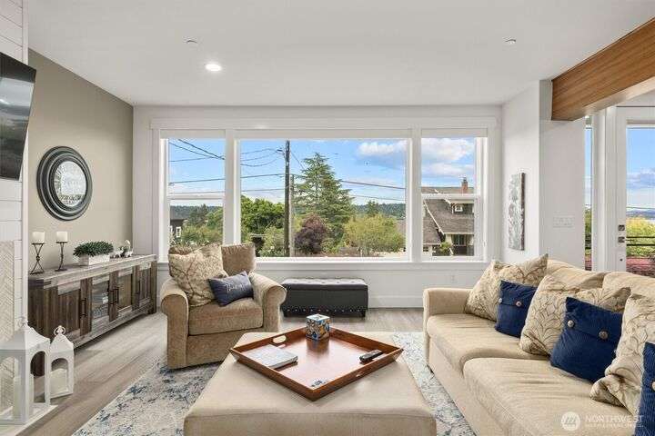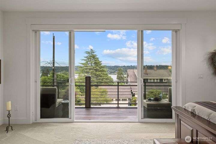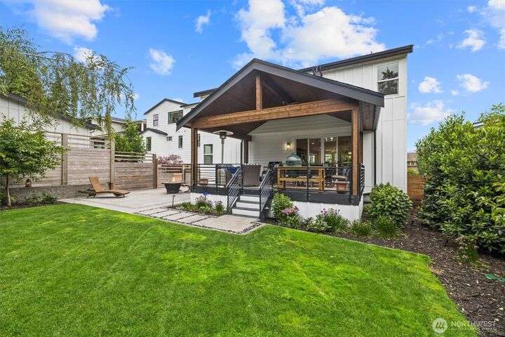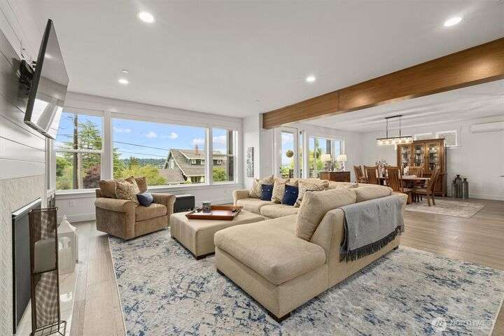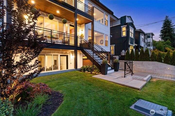 This multi-generational modern home offers a perfect blend of luxury & comfort, featuring large windows flooding the interior w/natural light & provide breathtaking views. Thoughtful sleek design with spacious living areas, & outdoor entertaining spaces, this property is ideal for both relaxing & entertaining. Chef's kitchen features 48 Bertazzoni gas range, marble backsplash, large marble slab island, & a walk-in pantry. Cozy up by one of the two fireplaces, on the main & upper levels, or enjoy the covered veranda & large fenced yard. Upper floor features a private primary suite w/luxurious spa-like bath & walk-in closet. Third-floor flex room w/wet bar & balcony, w/views. Make sure to check out the large fully equipped ground floor ADU.
