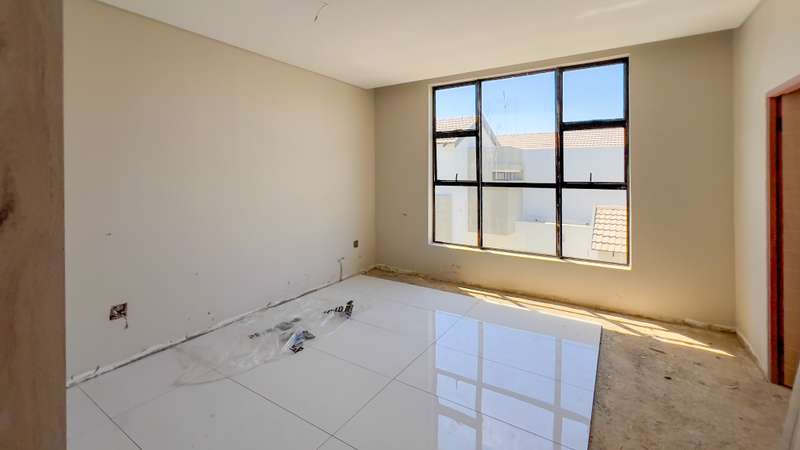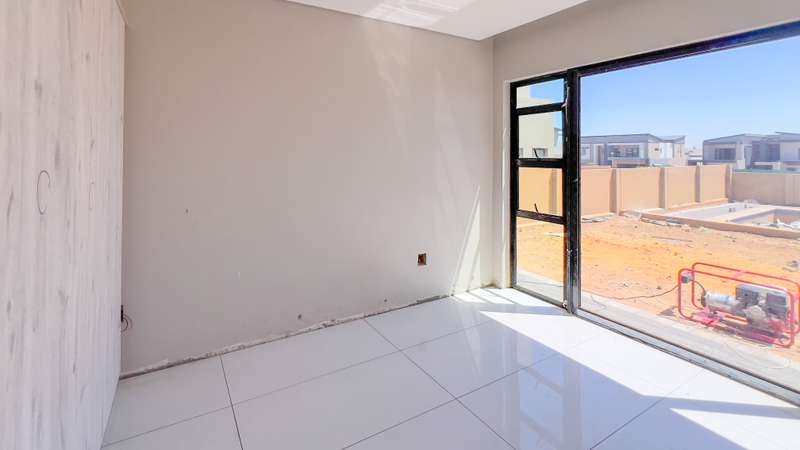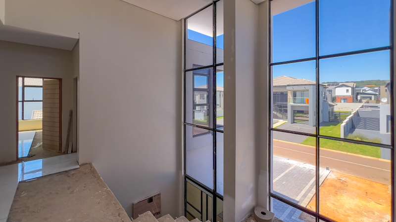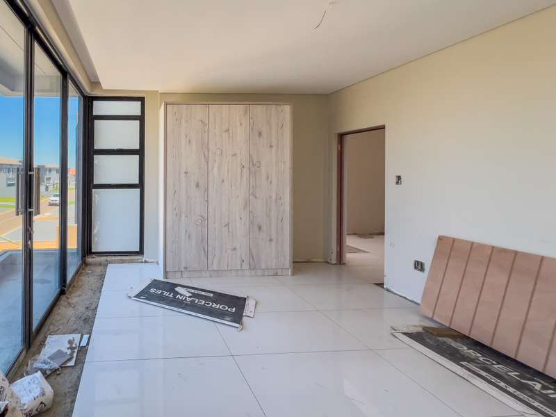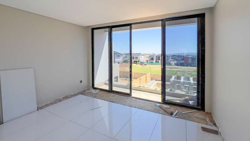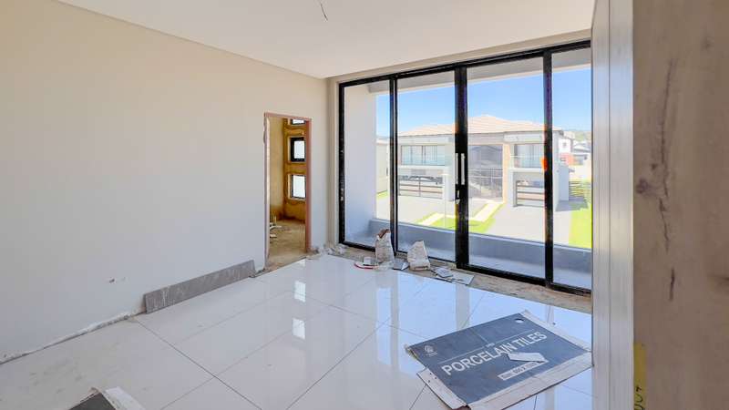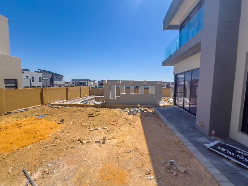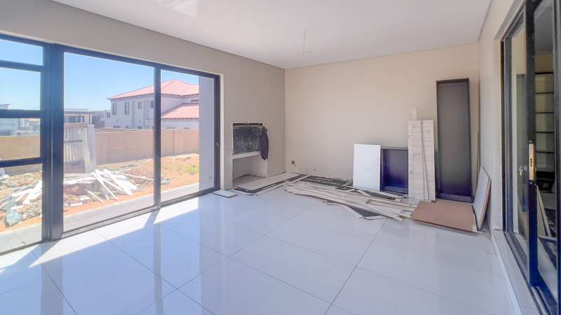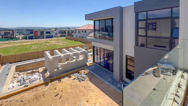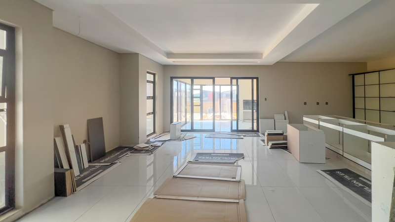 Step into an architectural gem where sophistication meets comfort. This ultra-modern 6-bedroom, 6-bathroom home is designed with unparalleled attention to detail, featuring high-end finishes throughout. From the moment you enter through the impressive double-volume entrance hall, you'll be captivated by the seamless blend of contemporary style and luxurious living. Lower Level: Elegant Design & Effortless Living A spacious open-plan layout flows effortlessly, offering: A well-equipped gourmet kitchen with an eye-level oven, convection oven, island nook, and walk-in pantry. Separate scullery/laundry area for added convenience. An open-plan dining room and family lounge with stacking doors leading to the patio. An enclosed braai room with a built-in braai, perfect for year-round entertainment. A beautifully appointed guest bedroom with sliding doors opening to the garden, complemented by a full en-suite bathroom. Guest toilet for visitors. Upper Level: Privacy & Comfort A pajama lounge and study create the perfect family retreat. Five spacious bedrooms, each with its own private balcony and full en-suite bathroom, provide ultimate privacy and luxury. The expansive master suite features: A large balcony with oversized sliding doors. A walk-in dressing room. A lavish en-suite bathroom with a double shower and premium finishes. Outdoor Oasis The enclosed patio opens to the beautifully landscaped garden and expansive entertainment area. Enjoy the large L-shaped pool and a cozy boma with fire pit—perfect for hosting guests or relaxing with family. Domestic accommodation with a private bathroom ensures convenience. Additional Features Three automated garages: one double and one single. Ample storage and parking space. Cutting-edge security and premium fixtures throughout. This home offers the perfect combination of ultra-modern elegance and functional living. Don’t miss the opportunity to own a property that truly stands out in its class. Book your private viewing today!