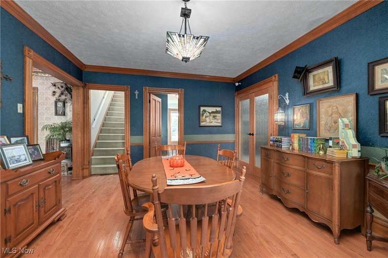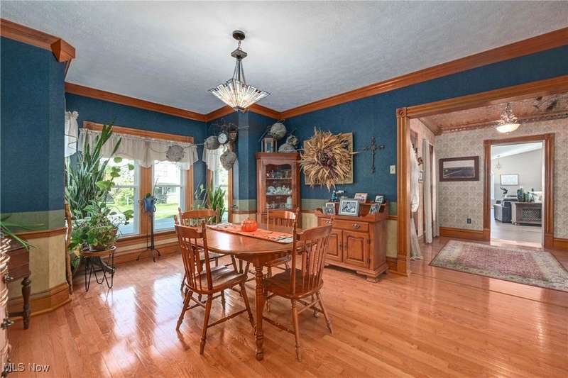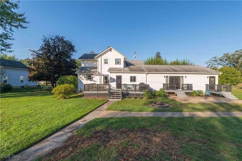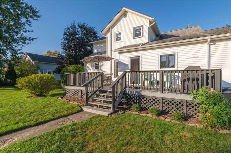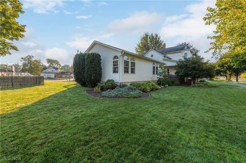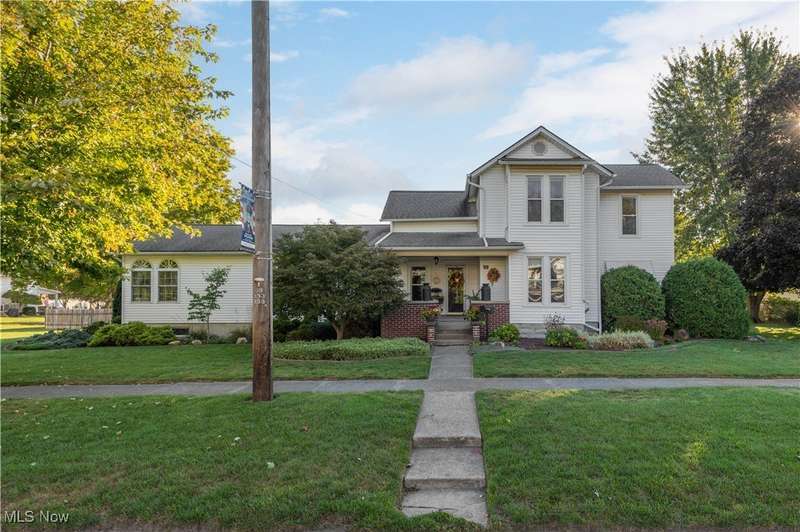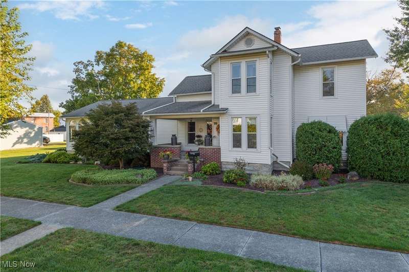 Must see property! Don't miss this supersized unique farmhouse showcasing both modern and classic features in the heart of New London. This beautifully preserved and lovingly updated home offers nearly 2,500 sq ft of elegant living space on a rare 1/2+ acre lot. With 3-bedrooms and 2-bathrooms the residence seamlessly blends timeless craftsmanship with everyday comfort. Step into the grand foyer featuring a striking copper ceiling, setting the tone for the rich character found throughout. Gleaming hardwood floors and ornate red oak trim flow through the spacious layout. The newer addition of the home features a stunning vaulted great room with soaring ceilings, LVL flooring (2020) and an abundance of natural light, creating an open-concept floor plan ideal for both everyday living and entertaining. The large study is adorned in ornate custom trim and accessed through beautiful French doors. Moving upstairs a sizeable primary bedroom with his and her closets, 2 additional bedrooms and an updated full bath (2025). Outside the expansive lot offers room to garden, play, or simply relax under the shade of covered front porch. Additional features include a detached garage, parking area and dog run. All just steps from downtown shops, and community events. A rare find with historic elegance, modern livability, and prime location, this home is a must-see. Additional Updates include Roof (approx. 2017), Newer Windows, Full home interior paint (2020), Basement stairwell (2024)