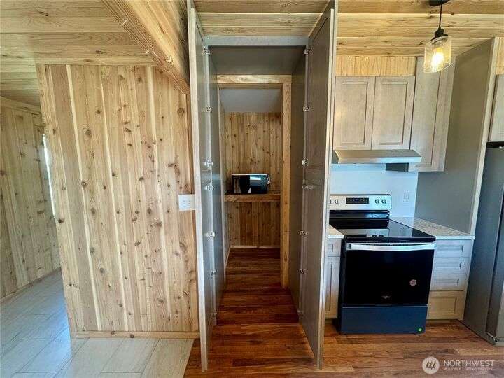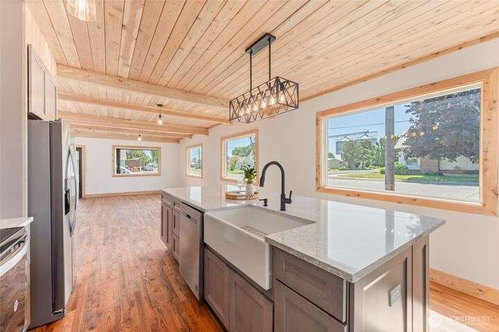 Welcome to your dream home in Mansfield, WA! This stunning 4-bed, 3-bath residence has been completely remodeled down to the studs- offering modern luxury on a spacious corner lot. Features include beautiful white oak hardwood flooring, gorgeous raw wood beams, an original clawfoot bathtub, and a creatively hidden pantry in the kitchen. Enjoy instant hot water and a bonus office or den. The property boasts a 30x30ft insulated shop, perfect for hobbies or storage. Relax on the front and back decks, and benefit from ALL-NEW pex plumbing, electrical, roof, siding, insulation, sheet rock, and appliances, including a gorgeous new kitchen with granite countertops. Don’t miss this incredible opportunity to get into a beautiful home!