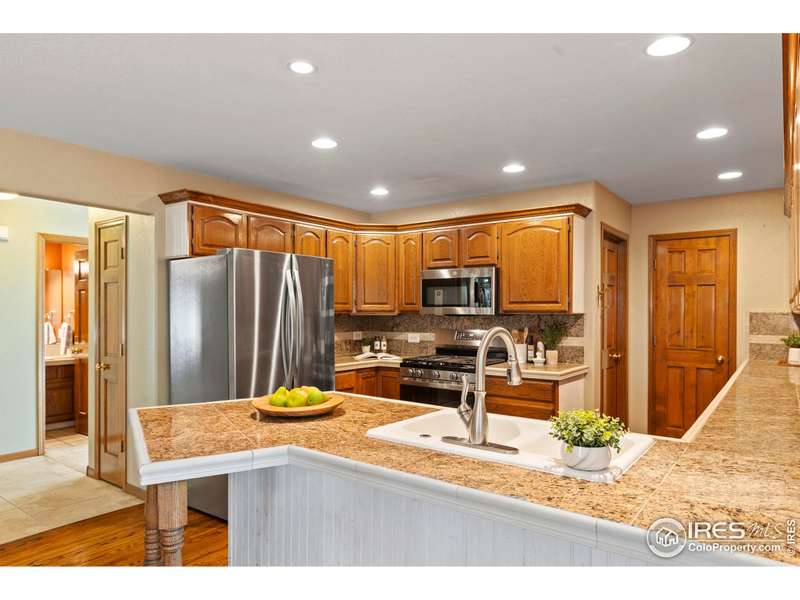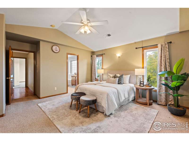 Tucked at the end of a peaceful cul-de-sac, this custom-built, one-owner home offers exceptional privacy, mature landscaping, a picturesque backdrop and no HOA. Designed for everyday comfort and effortless living, the spacious 5-bedroom, 4-bath layout combines timeless craftsmanship with thoughtful modern updates. Enjoy peace of mind with new kitchen appliances, a newer furnace, and updated windows, and exterior siding, ensuring lasting curb appeal and energy efficiency. Sunlight fills the open main level, where generous living and dining spaces flow seamlessly-perfect for entertaining or quiet evenings at home. The garden-level basement expands your living area with a large rec room, private guest suite, and abundant storage. Upstairs, the expansive primary suite offers a generous walk-in closet and a 5-piece bath. Step outside to a brand-new deck and patio surrounded by mature trees, where you'll appreciate the serene setting and no rear neighbors. The oversized two-car garage provides ample space for storage, hobbies, or a workshop.With direct access to the canal trail leading to Seven Lakes Park and Boyd Lake State Park, this move-in-ready gem delivers the perfect blend of privacy, location, and Colorado lifestyle.