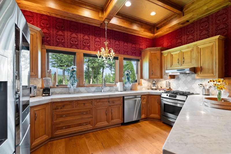 TWO grand homes on 40 fenced acres with mountain views in the coveted Whitefish Hills community. Both furnished homes are a masterpiece of design. Soaring ceilings, floor-to-ceiling windows, and expansive spaces for grand scale entertaining. Hand-selected stone, rich woods, and bespoke textiles adorn every surface. The true genius of this property lies in its amenities, which rival exclusive resorts. A private playground, offering an array of recreational and leisure opportunities: gym, spa, theatre room, bowling ally, game room, swimming pool, 2 hot tubs, Olympic-depth, man-made swimming lake with waterfall and rock cliff for diving, Astro turf entertaining spaces, putting green, bocce ball, 6 fire pits & 7 water features. Miles of walking/skiing trails wind through the property's lush forests, which border State land. An established orchard and herb garden provide farm-to-table living. The detached garage and barn provide space for vehicles, toys or future living space expansion.