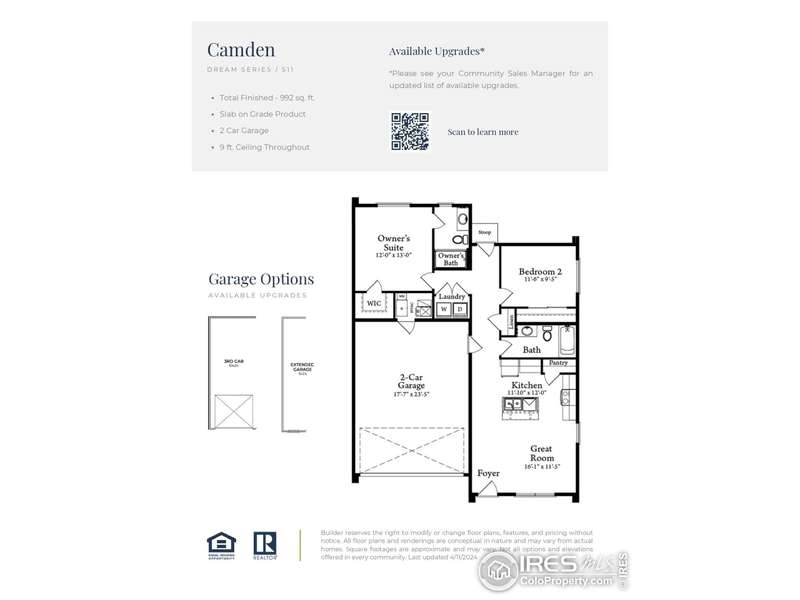 Move in Ready. Builder offering 4.75% fixed FHA interest rate or up to $20,000 sellers concession with use of a preferred lender. The Camden is a thoughtfully designed 992 sq ft floor plan, meticulously crafted for attainability. Discover a perfect blend of functionality and comfort in this charming open-concept living space, boasting modern features and a smart layout of two bedrooms and two full baths. Upgrades - 42" Cabinets, Gas Range, Refrigerator, Quartz countertops throughout, Front landscape