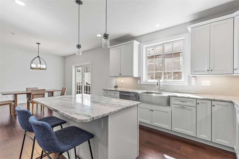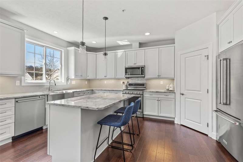 Discover this stunning end-unit townhome located in the highly desirable Chapel Harbor community! This beautifully designed residence offers approximately 2,700 square feet of living space and was built in 2018. It features three spacious bedrooms, two and a half bathrooms, and a 2-car attached garage. The bright and spacious kitchen boasts ample counter space and storage, perfect for both everyday use and entertaining. The open-concept kitchen and dining area leads directly to a deck, while the oversized living room includes high ceilings and a cozy gas fireplace. A first-floor game room or flex space provides additional versatility, complete with access to a patio for extra outdoor enjoyment. Enjoy low maintenance living with a low monthly fee. This home is ideally situated close to shops, restaurants, and other amenities in the Waterworks, offering both convenience and comfort in a prime location.