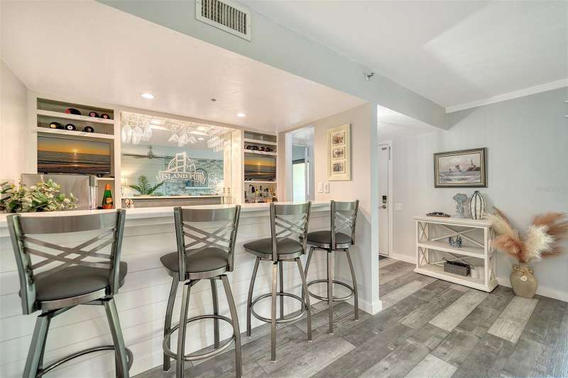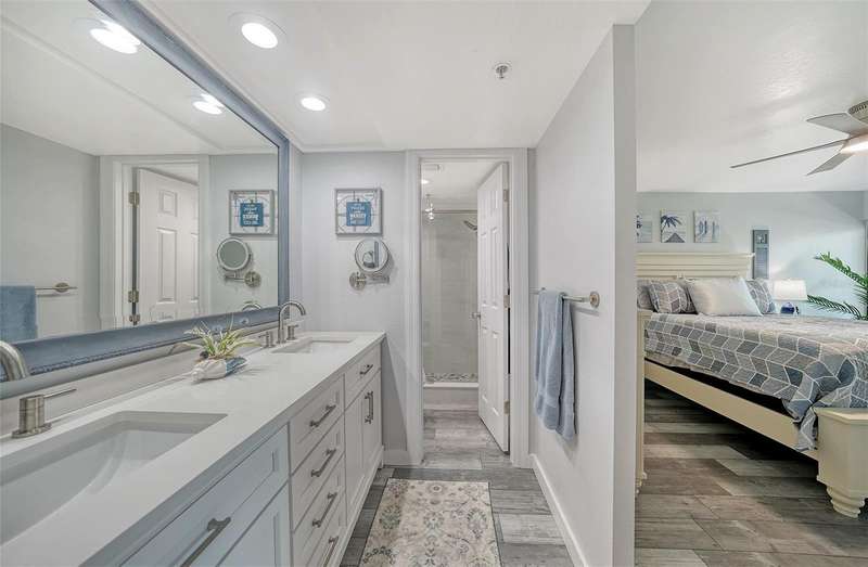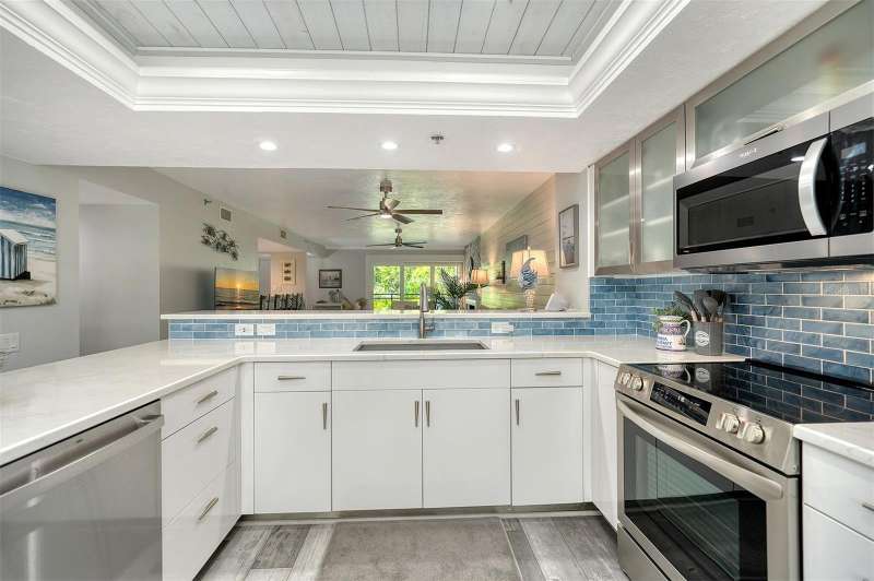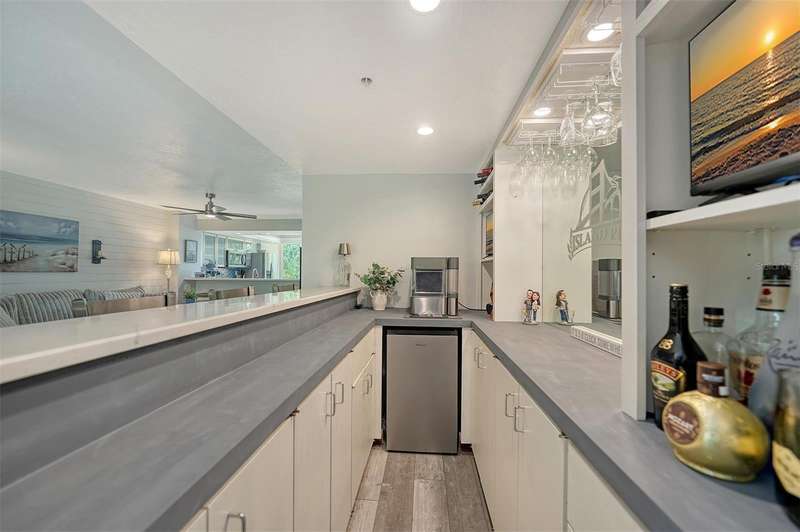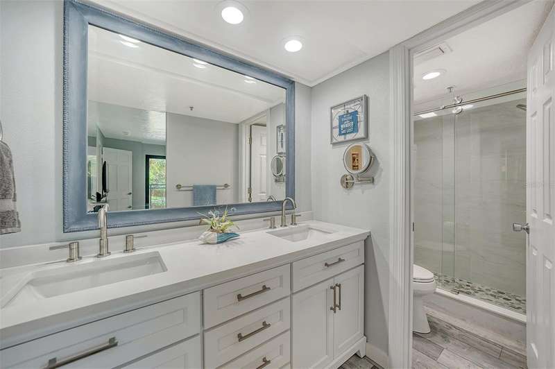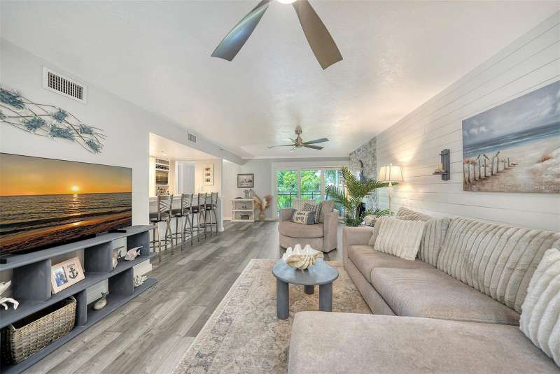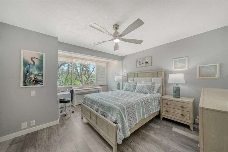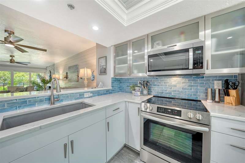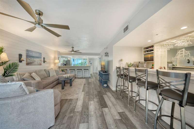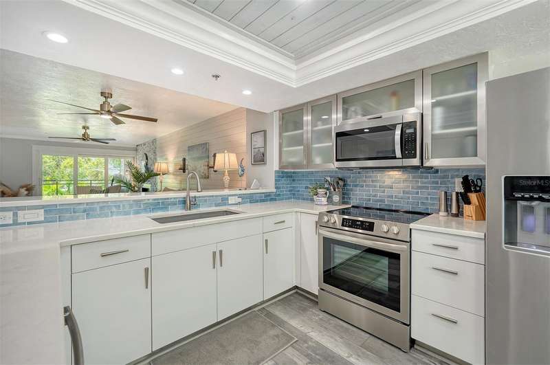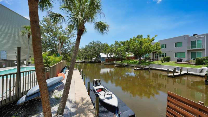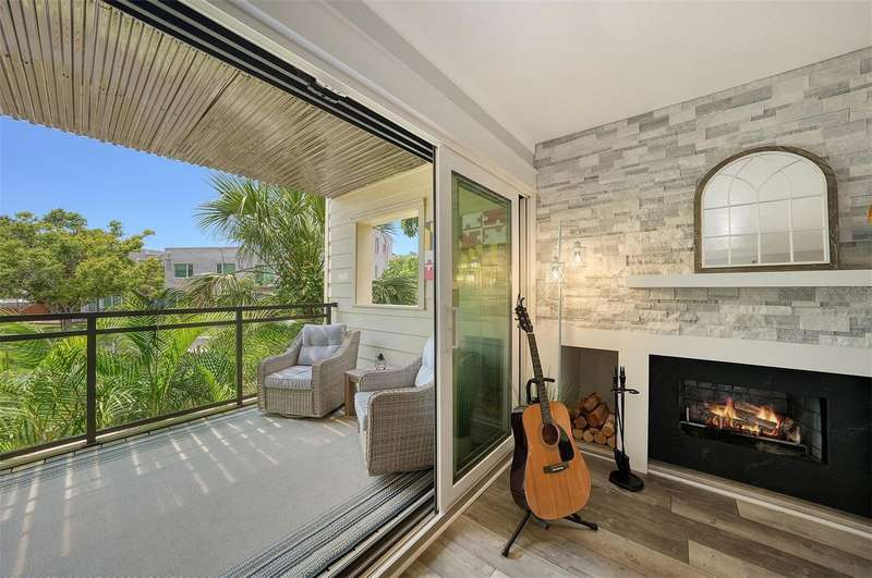 Live on the water in the heart of Downtown Sarasota. Tucked away in a beautifully shaded, WATERFRONT community along the Hudson Bayou, this UPDATED condo is the perfect blend of urban convenience and serene, coastal living. Located in Hudson Oaks, a hidden gem between historic Laurel Park and eclectic Burns Court, you’re just steps from Sarasota’s finest dining, shopping, entertainment, Selby Gardens, the Bayfront, and only a bike ride over the Ringling Bridge to Lido Key Beach and St. Armands Circle. Drenched in natural light, this spacious 2-bedroom, 2-bathroom, 2-balcony residence is designed for effortless indoor-outdoor living. The open-concept great room features hurricane-rated sliders that lead to a covered balcony with peaceful water and pool views. Plexiglass half-walls offer unobstructed sightlines of the Bayou. A wood-burning fireplace and large bar area make this an entertainer’s dream. The updated eat-in kitchen is both functional and stylish, with soft-close cabinetry, pull-out shelving, quartz countertops, subway tile backsplash, stainless steel appliances, pantry closet, and a breakfast bar for additional dining space. The primary suite features a private covered balcony, walk-in closet with custom built-ins, and a beautifully renovated ensuite featuring dual sinks, quartz counters, and a walk-in tiled shower with glass door. A generous second bedroom includes a cozy alcove, while the second bathroom is equally refined with quartz counters, vessel sink, and tiled walk-in shower. Additional features: updated electrical panel (2023), roof replaced (2020), large windows and hurricane-rated sliders (2017), in-unit laundry with Maytag washer/dryer & storage cabinetry, laminate plank flooring, recessed lighting, ceiling fans, and Hunter Douglas shades. Attached carport under building with an oversized 14’ x 8’ storage room, perfect for beach gear, bikes, and more. Hudson Oaks offers rare waterfront living downtown with boat docks, kayak launch, swimming pool, gas grill, and a pedestrian bridge to Laurel Park. Hudson Bayou is a protected waterway with small boat access to Sarasota Bay, making it perfect for kayaking, paddleboarding, or simply enjoying the views. Surround yourself with multi-million-dollar homes in one of Sarasota’s most sought-after neighborhoods, and experience the Florida lifestyle at its best – private, pet-friendly, and just moments from everything Downtown Sarasota and life on the Gulf Coast has to offer.