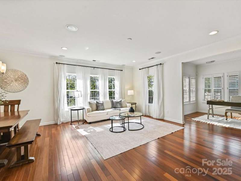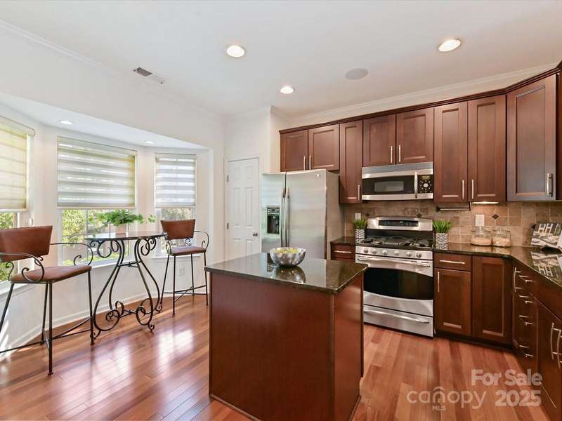 Lock and Leave dream South End townhome! A MUST SEE! This end unit, freshly painted townhome puts you just a stone's throw away from Charlotte's best restaurants, breweries, shops, and the light rail, with Uptown and Bank of America Stadium just a short stroll or scooter ride away. Bright and open, the home features hardwoods, built-in speakers, and great flow for everyday living, entertaining, or working from home. Upstairs, the primary suite includes an oversized shower, two closets, and hardwood floors, while each bedroom has its own private bathroom. The lower level steals the show with a built-in bar that is plumbed for a refrigerator and walkout patio, perfect for hosting game days or nights in with friends. With natural light pouring through every level and outdoor spaces to enjoy your coffee or cocktails, this home offers the ultimate blend of convenience, style, and energy in one of Charlotte's most sought-after neighborhoods.