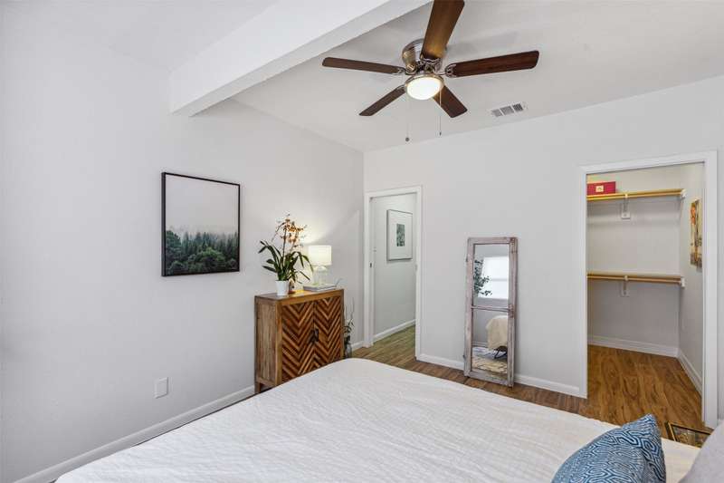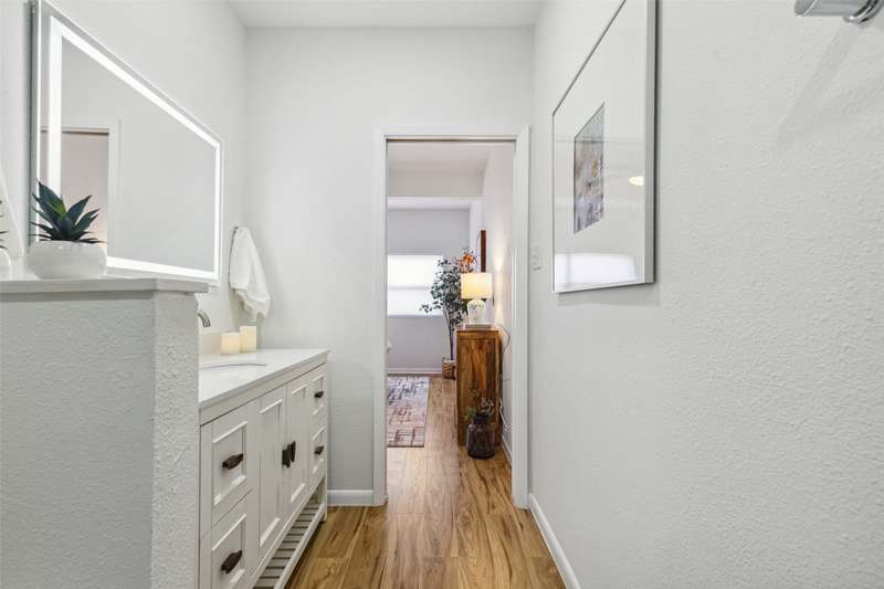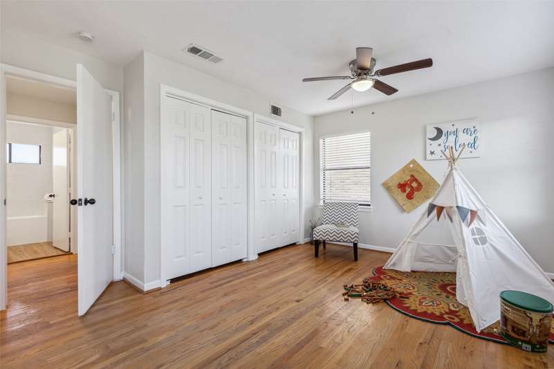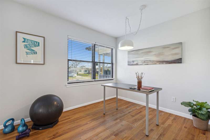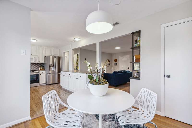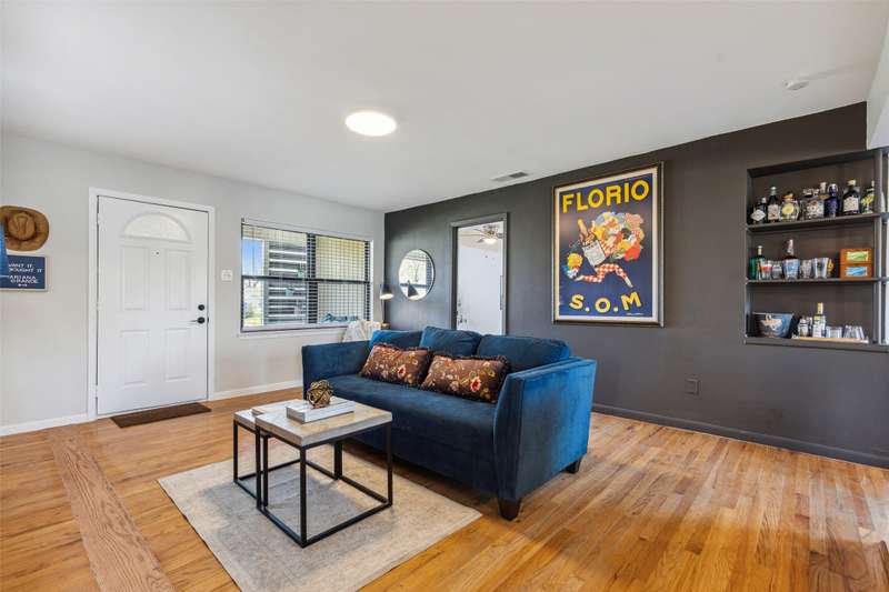 A must-see Mid-Century gem in east Dallas! The open kitchen is the heart of the home, featuring a large island, stainless gas cooktop, ample counter space, and abundant cabinetry. The primary suite includes a modern en suite bath with designer tile, custom cabinetry, anti-fog mirror, and a double walk-in shower. You'll also find a true walk-in closet and a dedicated full-size laundry area, rare for the neighborhood. A large secondary bedroom offers great flex space, perfect for an art studio, office, or playroom. Enjoy a spacious backyard with an oversized walk-in storage building, .21-acre lot with alley access, and an entertainers patio. Fruit trees including peach, apple, pear, plum, and fig and an assortment of wild herbs and perennial sunflowers complete the outdoor oasis. Over $40k in recent upgrades including a new roof, new PVC sewer line, AC unit, cabinet, and line-set, and a new water softener and reverse osmosis tap.