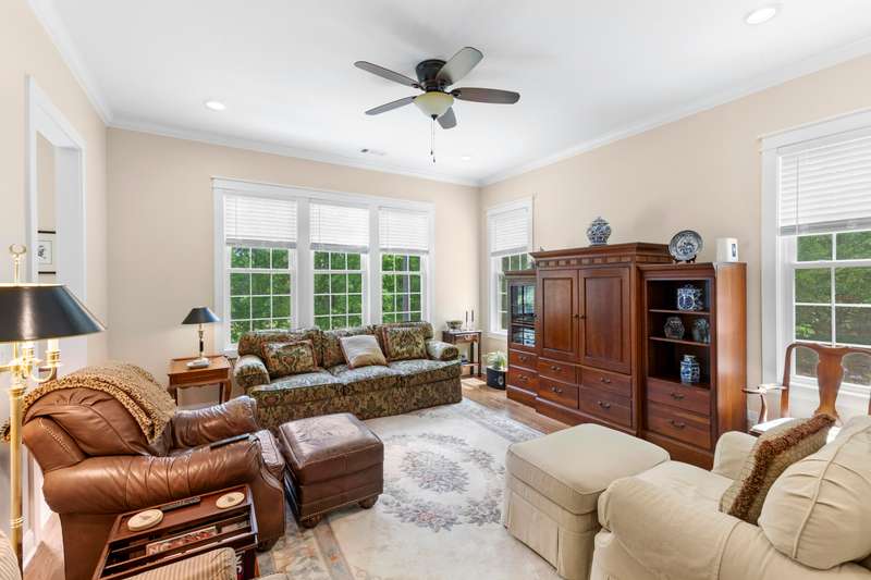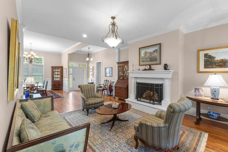 MOVE IN READ Looking for a home to enjoy gracious, spacious living, exquisite detail and superior construction? Welcome to 2085 Cardigan. This custom home, built in 2023 is a one story ranch with bonus room. Enter through the wide front entry and step into the foyer. You'll immediately view exquisite features such as 10 and 12 feet smooth ceilings, classic crown molding, tall transom windows, hardwood floors, and picture frame column accents. The living room displays a distinctive one-of-a kind limestone hearth 42'' fireplace. The large dining room will be the heart of your gatherings, and emanates casual elegance. A cook's dream kitchen features granite counter tops, gas cook top, large island with sink, timeless cherry cabinets - well designed with a combination of cabinets and drawers, double ovens, and a pantry. The wide, windowed breakfast area provides views of the back deck, yard and golf course. There's a comfortable family room/den for your relaxation. The primary bedroom is classically designed, featuring transom windows for natural light. The roomy primary bath offers two deep walk-in closets, double sinks, linen closet, large shower and water closet. Two additional bedrooms, a full bath, and 6 x 12 laundry room (w/ cabinets, and plenty of counter space) complete the first floor. Ascend to the second level to a 450 sq ft bonus room/4th bedroom, full bath, a 6 x 9 flex room, and walk-in partially floored attic. For outside enjoyment, theres a 12 x 15 screened porch, a grilling deck and a lower level patio for outside dining. Under the home is stand-up crawl space with an outside entrance and a partial concrete slab for workshop or storage. This stately home is perfectly placed on a 9/10 acre golf course lot with a tree separation for privacy. Young landscaping, professionally completed, will enhance the 9/10 ac lot through the years. Cedar Creek Development is a resort style community with pool, tennis, pickleball, golf, walking trails, nature trails, mini parks and ponds. County taxes only.