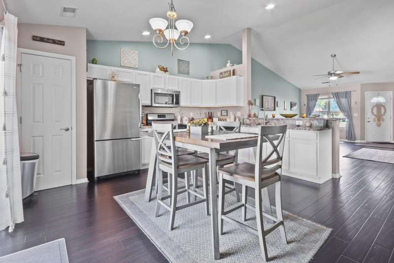Nestled in the town of Merrillville, Indiana, this delightful 3-bedroom, 2-bathroom duplex offers a perfect blend of comfort and style. The open-concept design seamlessly integrates the living, dining, and kitchen areas, creating an inviting space ideal for both relaxation and entertaining. The home boasts beautiful hardwood floors that add warmth and elegance throughout. With a dedicated office, this property is perfect for those working from home or in need of a quiet study space. Home is equipped with Vivint Smart Home. The attached 2.5-car garage provides ample storage and convenience. Outside, you'll find a vinyl fenced-in yard with a spacious patio, perfect for outdoor gatherings or enjoying a peaceful evening under the stars. This home is a true gem in Merrillville, offering both functionality and charm in a desirable location.