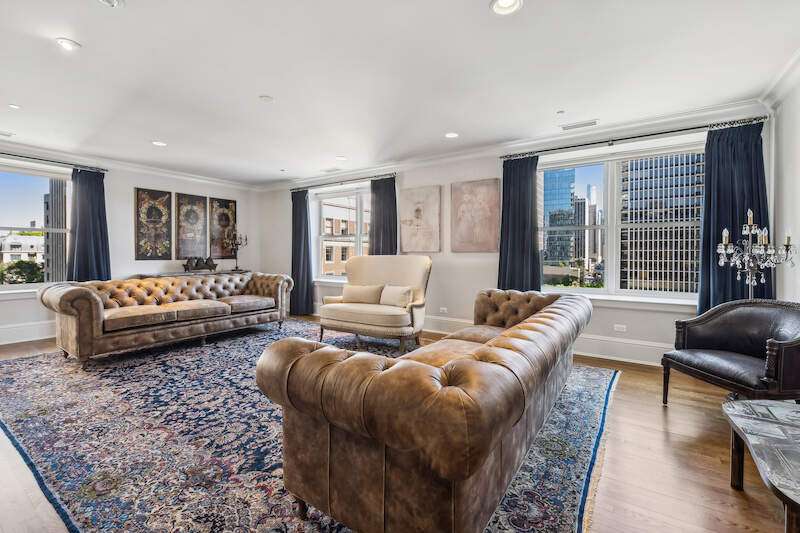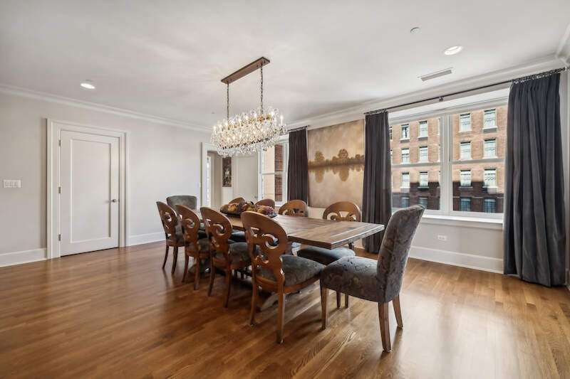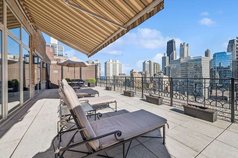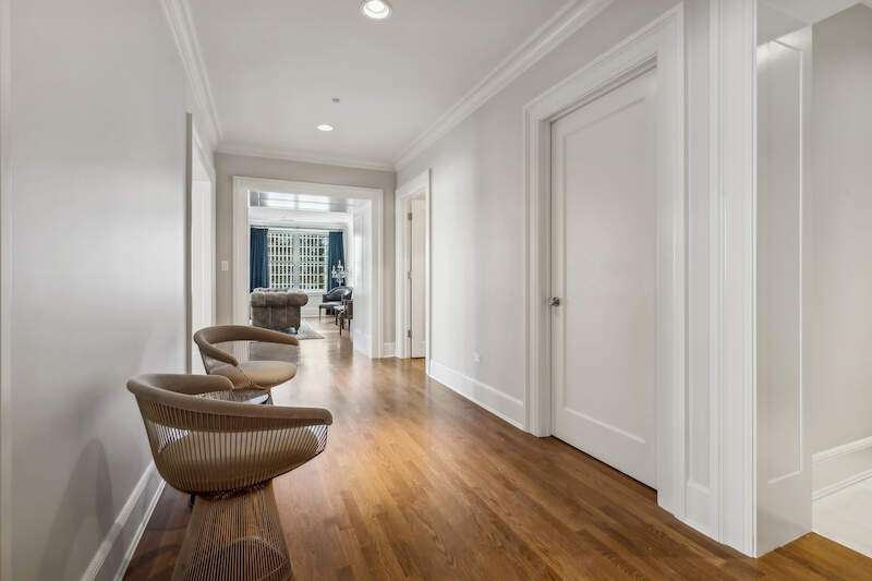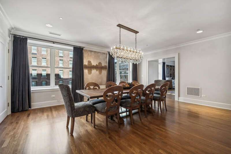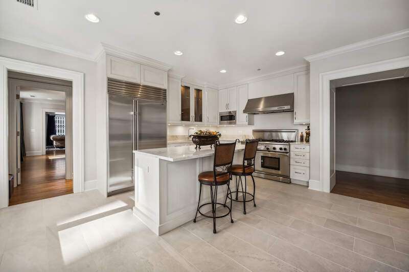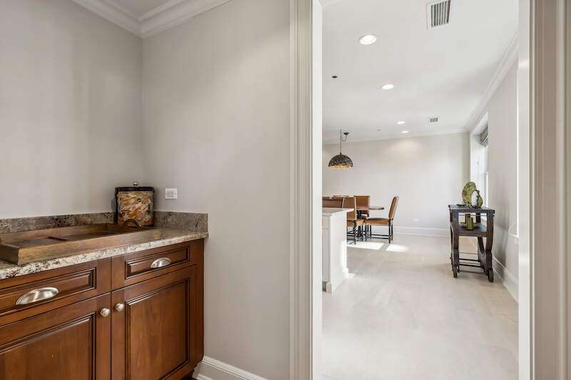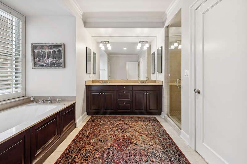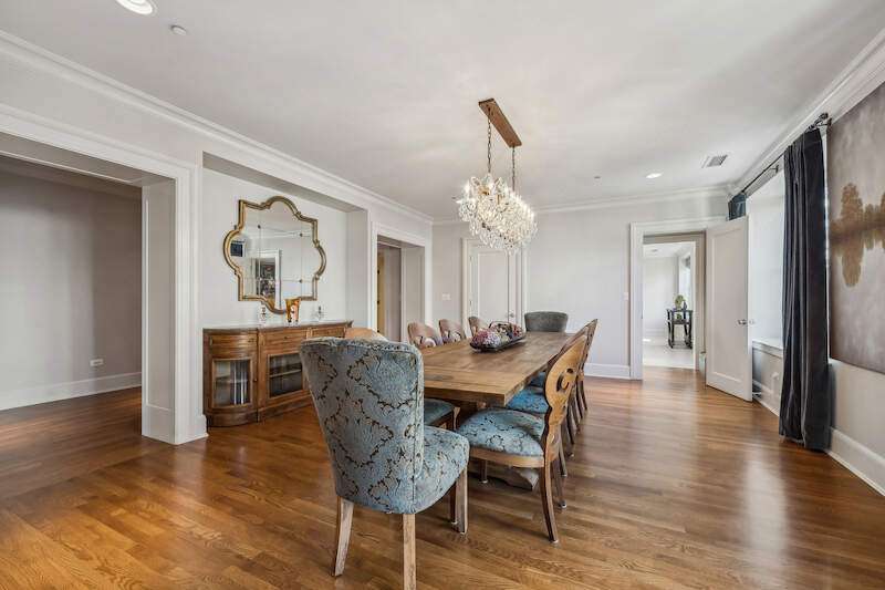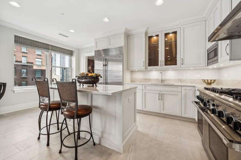 Graciously sized and beautifully appointed, this 3945 SQFT residence at The Ambassador spans the entire east side of the building and lives like a single-family home. Flooded with an abundance of natural light from southeast corner exposures, the spacious living room with fireplace offers beautiful views. A separate formal dining room is the ideal location for a large gathering, making it easy to entertain on a large scale. A conveniently located butler's pantry separates the dining room from the kitchen. The large eat-in kitchen features stone flooring, top-of-the-line stainless steel appliances, neutral white cabinetry and countertops. An island/breakfast bar and large informal eat-in space complement this perfect kitchen. Just off the kitchen, a separate, cozy family room is the ideal space to relax. A powder room and walk-in coat closet in the entry way completes the living space. The luxurious primary suite includes a large bedroom with private balcony, a walk-in closet, and an ensuite bath with Whirlpool tub, separate shower, and dual vanity. The second bedroom has a private balcony, walk-in closet, and ensuite bath. The spacious third bedroom has an ensuite bath with a tub/shower. The huge laundry room has an oversized washer/dryer, sink, and ample counter and storage space. The building features a rooftop party room with full kitchen and terrace, a fitness room with indoor basketball court, landscaped outdoor courtyard with grills and dog run, and 24-hour door staff. One heated garage parking space included in the price. One additional parking space available for $50K.