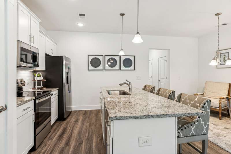 Welcome to your new home in the sought-after Simmons Ridge Community in Franklin. This move-in ready townhome features 3 bedrooms and 2.5 baths with a thoughtfully designed open-concept layout that unites the kitchen, dining, and living spaces. The modern kitchen, equipped with a large island, granite countertops, and stainless steel appliances, offers plenty of space for both cooking and seating. Upstairs, the expansive primary bedroom includes an en-suite bathroom with double vanities, providing a serene escape. The covered deck is perfect for unwinding or entertaining. Additional perks include an attached one-car garage, driveway parking, and ample guest parking. Simmons Ridge also provides excellent community amenities like a pool with a clubhouse, walking trails, and a playground. Don't miss your chance to call this stunning townhome your own!